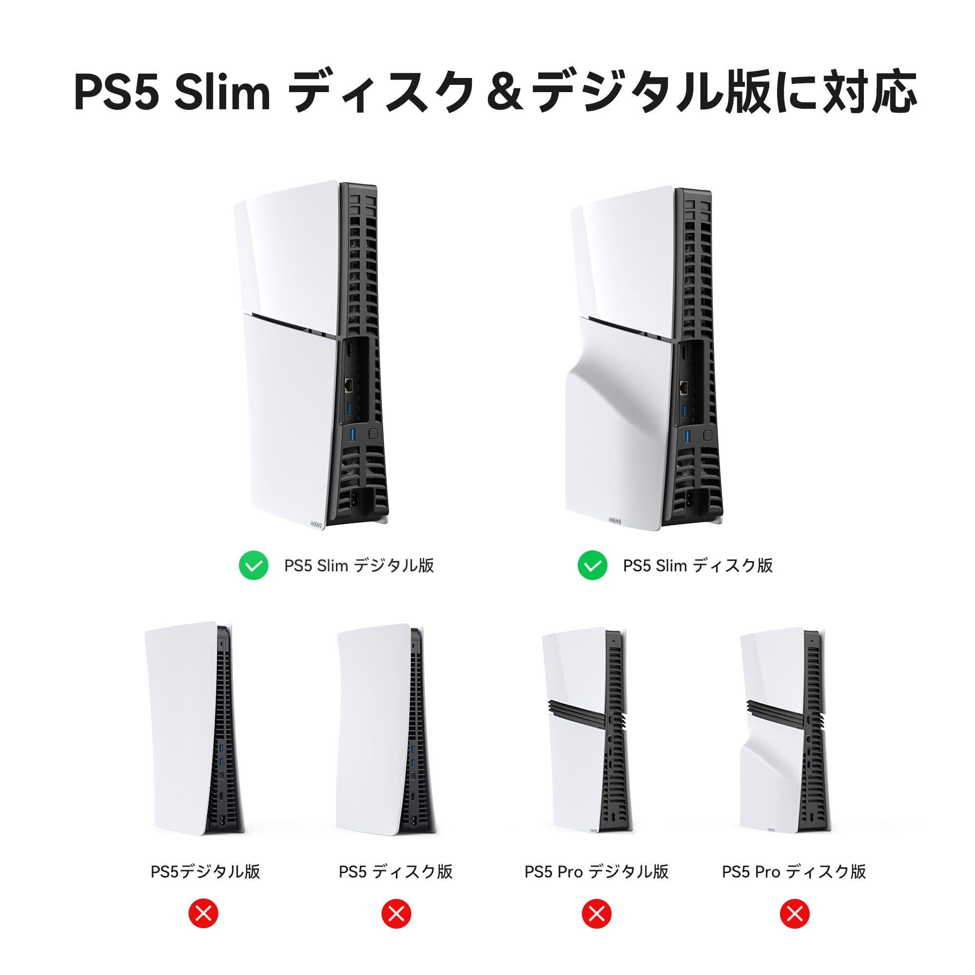 【互換性のご確認】ご注文の前に、使用するコンソールのモデルをご確認ください。本冷却ファンは、PS5 SLIMのディスク版およびデジタル版(縦置き・横置き両方に対応)に対応しています。2020年モデルのPS5ディスク版・デジタル版および2024年のPS5 Proモデルには対応していません。