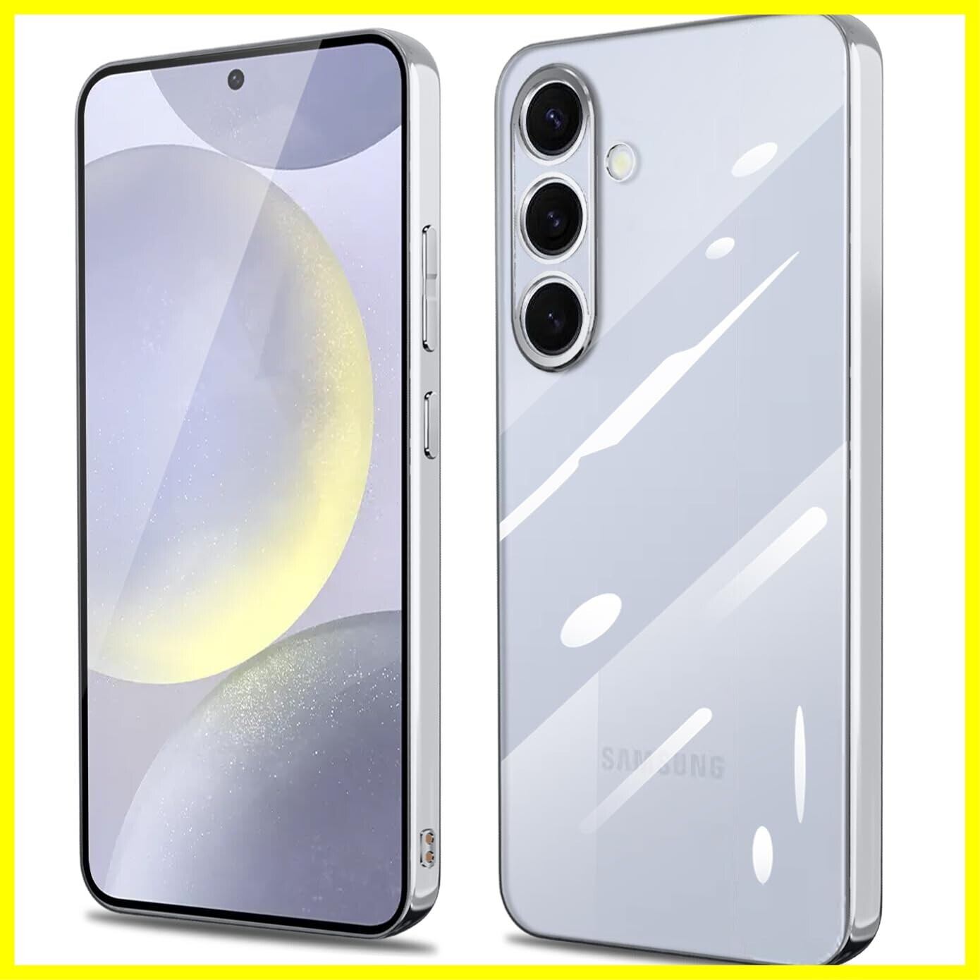Galaxy S24 用 ケース クリア 銀 ギャラクシーs24 SC-51E SCG25 カバー 透明 耐衝撃 軽量 薄型 tpu 背面クリア 銀縁 メッキ加工 スマホケース ソフト ストラップホール付き ワイヤレス充電対応(galaxyS24, シルバー)