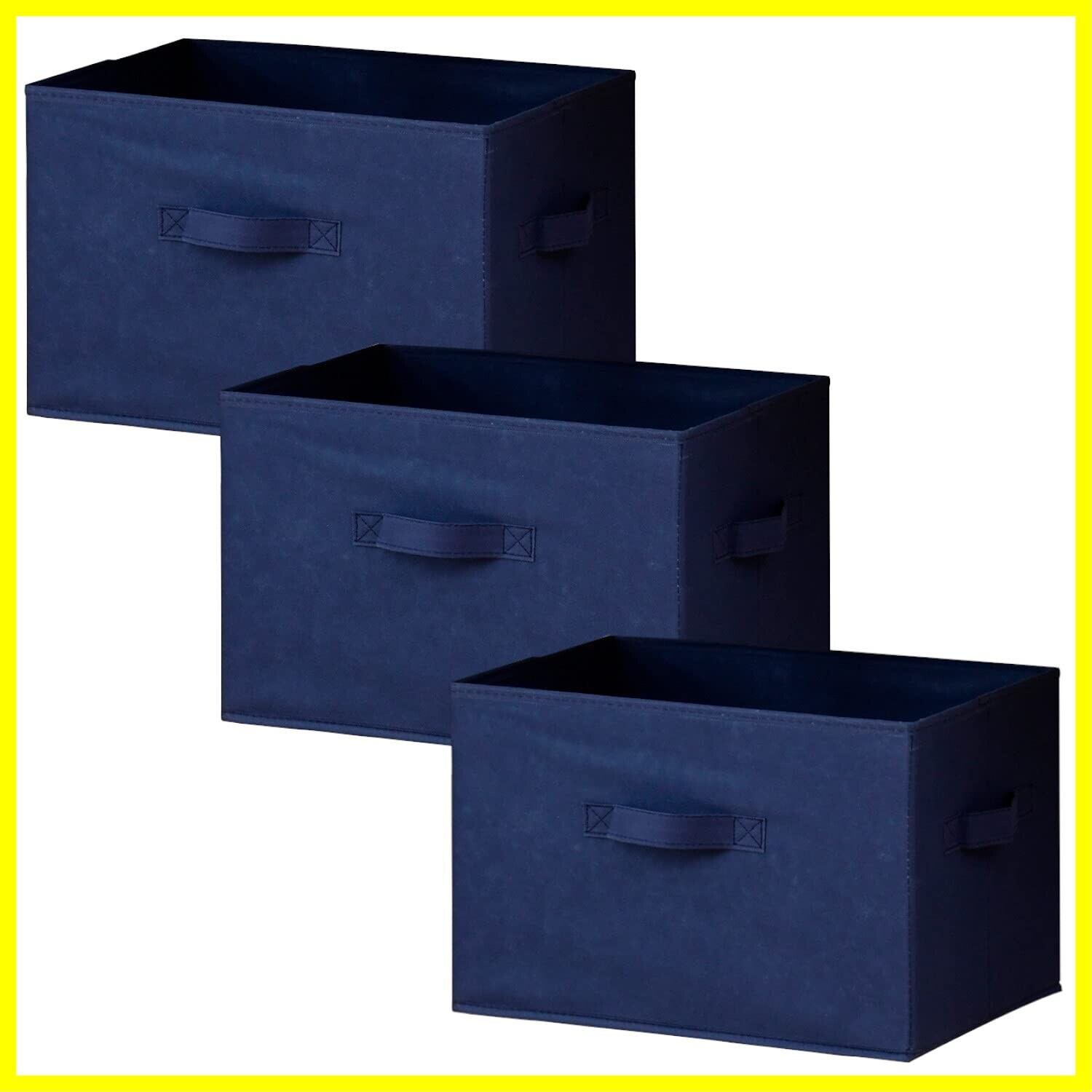 山善(YAMAZEN) どこでも収納ボックス 折り畳み 【3個セット】 取っ手付き カラーボックス対応 衣類 収納 完成品 幅38×奥行25×高さ25cm 収納ボックス 収納ケース ネイビー YTCF-3P(NV)
