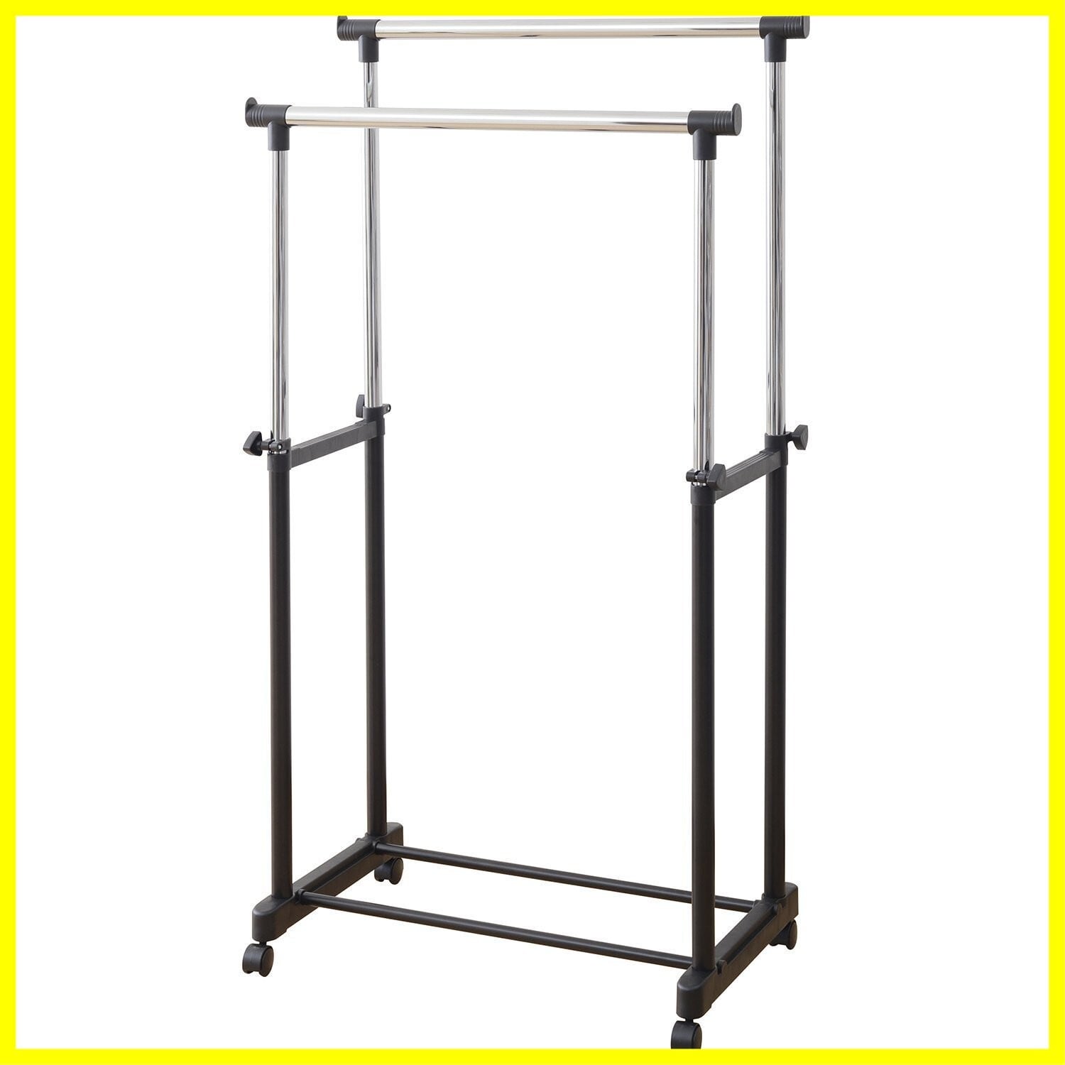 [山善(YAMAZEN) ハンガーラック ダブル 2段 高さ伸縮 耐荷重15kg キャスター付き 幅75×奥行43×高さ89-152cm 組立品 ブラック MKS-W(BK)(S)]
