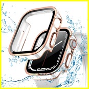 AMAPC for Apple Watch ケース 対応 IP68完全防水 バンド 水泳・スポーツ専用 防水ケース 3D直角エッジデザイン Apple Watch Series6/SE3/SE2/SE/5/4 40mm対応 光沢のホワイト&ローズゴールド