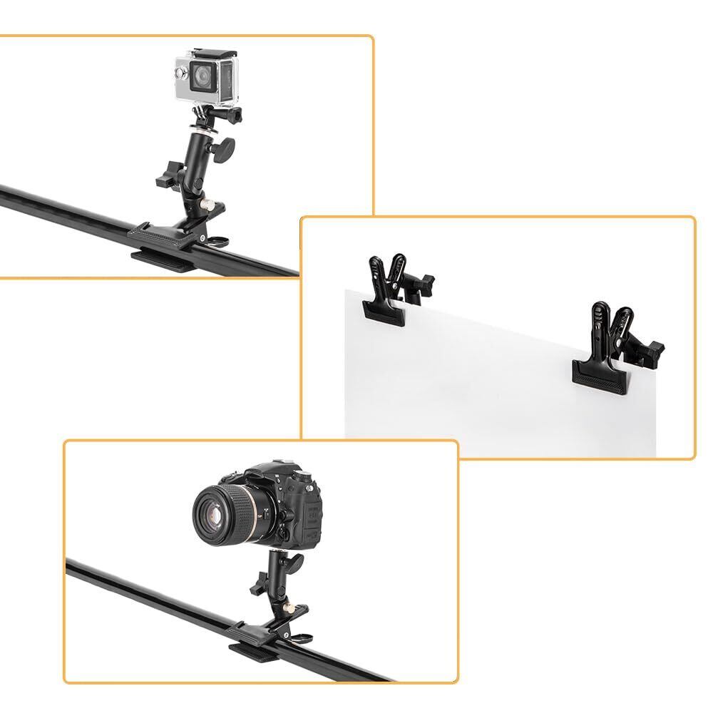 用途:リフレクター、背景幕、傘などを固定できます。取り外し可能な1/4~3/8インチのネジは、ほとんどの撮影機材に対応します。最大荷重:3kg。