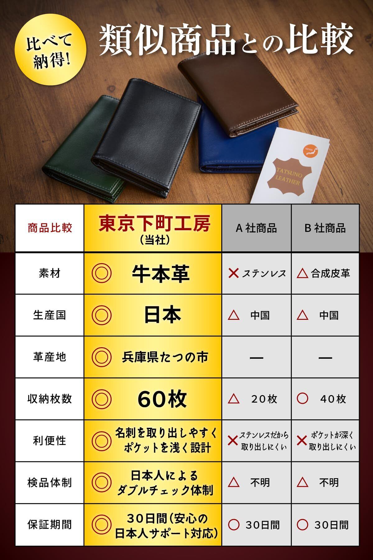 【商品詳細】◆横11.1cm、縦7.8cm、厚み1.5cm ◆カラー:ブラック、ブラウン、ネイビー、ダークグリーン ◆素材:たつのレザー(神戸牛) ◆収納ポケット:4つ ◆収納枚数:60枚 ◆ブランド名:東京下町工房 ◆万が一、商品不良があった場合、ご購入後30日以内に限り返品・返金対応いたします。お気軽にご連絡くださいませ。