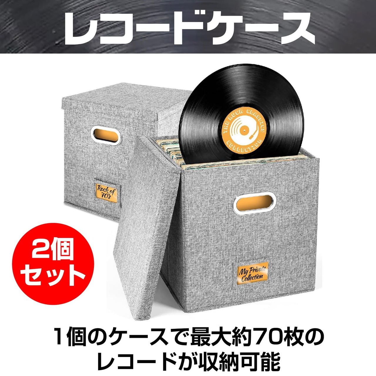 【レコードケース】このレコード専用ケースは、1個のケースで最大約70枚のレコードが収納可能。約40~50枚の収納であれジャケットをめくりながらの収納が可能です。2個セットで合計最大約140枚のレコードが収納可能。