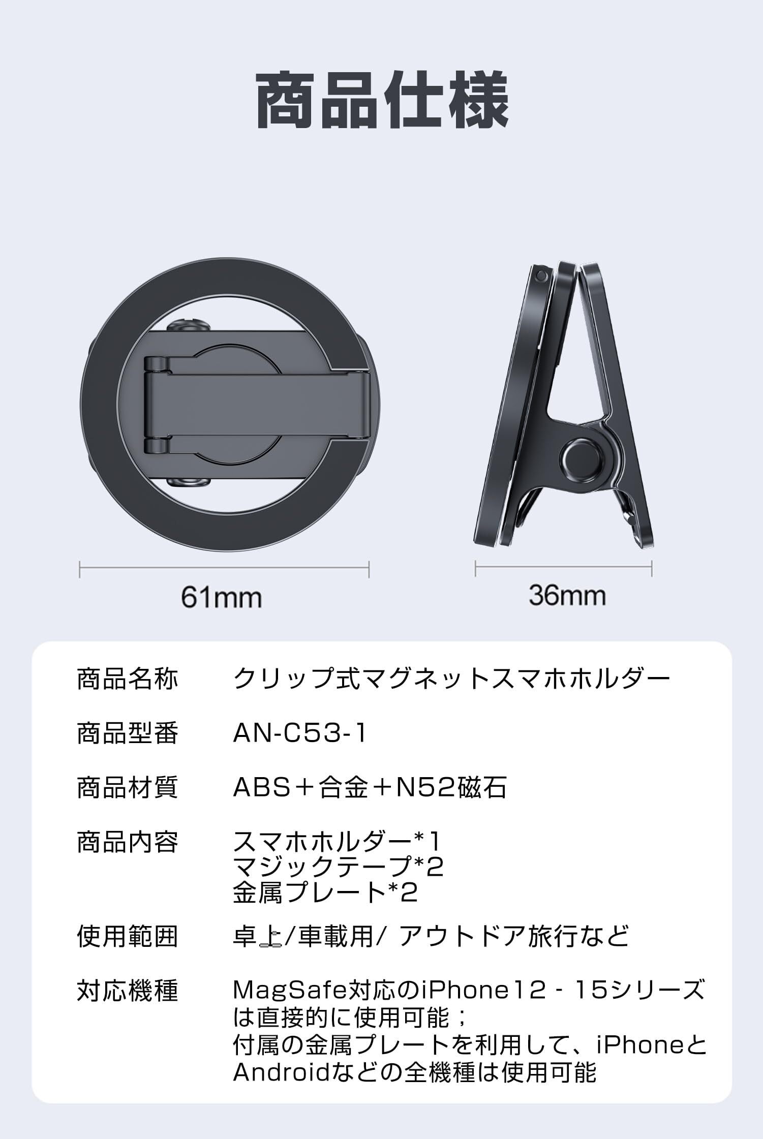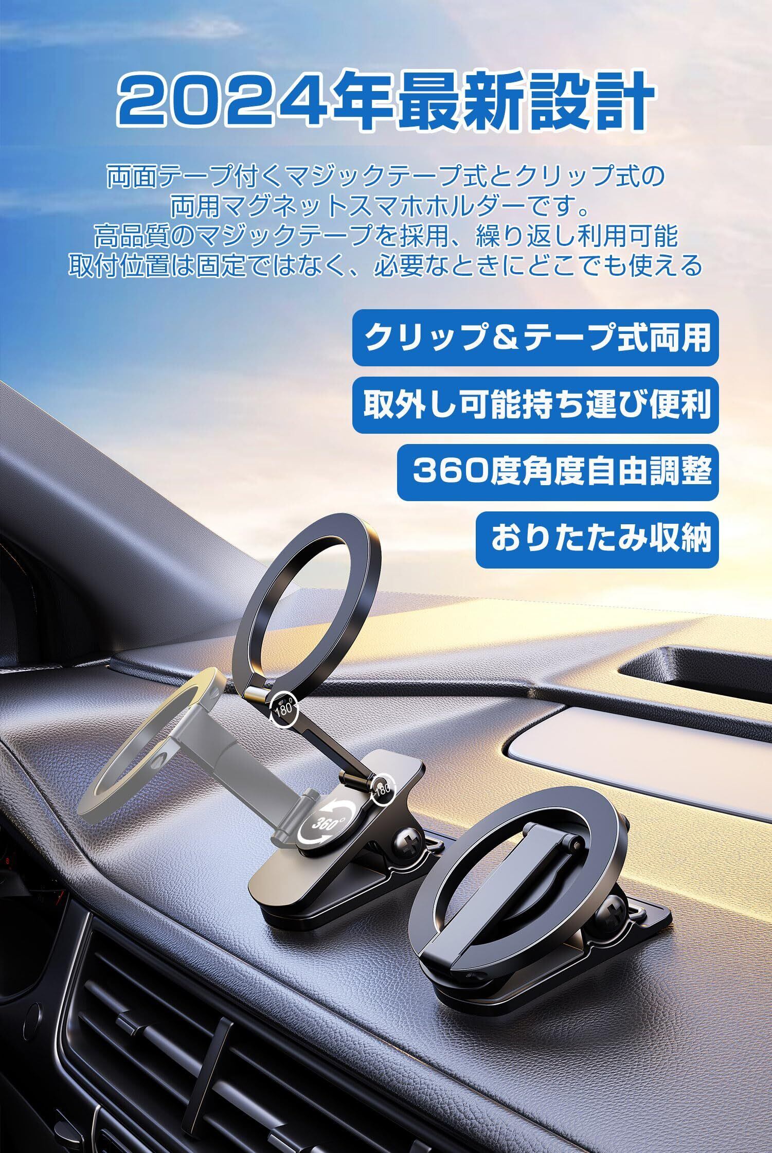 Antion マグネットスマホホルダー クリップ式 MagSafe対応 マジックテープ付き スマホスタンド 折り畳める 車載ホルダー 三関節調整 携帯スタンド 卓上用 車載用 旅行用 携帯便利