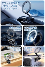 【新型クリップ式スマホホルダー】吸盤式や粘着式と違って、取り付けや取り外し便利化のクリップ式マグネットスマホホルダーです。取り付け方①:マジックテープつきで、卓上、壁、ダッシュボードなどに粘着して、取り付けます。取り付け方②:テーブルコーナー、トランクのハンドル、テーブルボードなどにクリップを挟むだけで取り付けます。