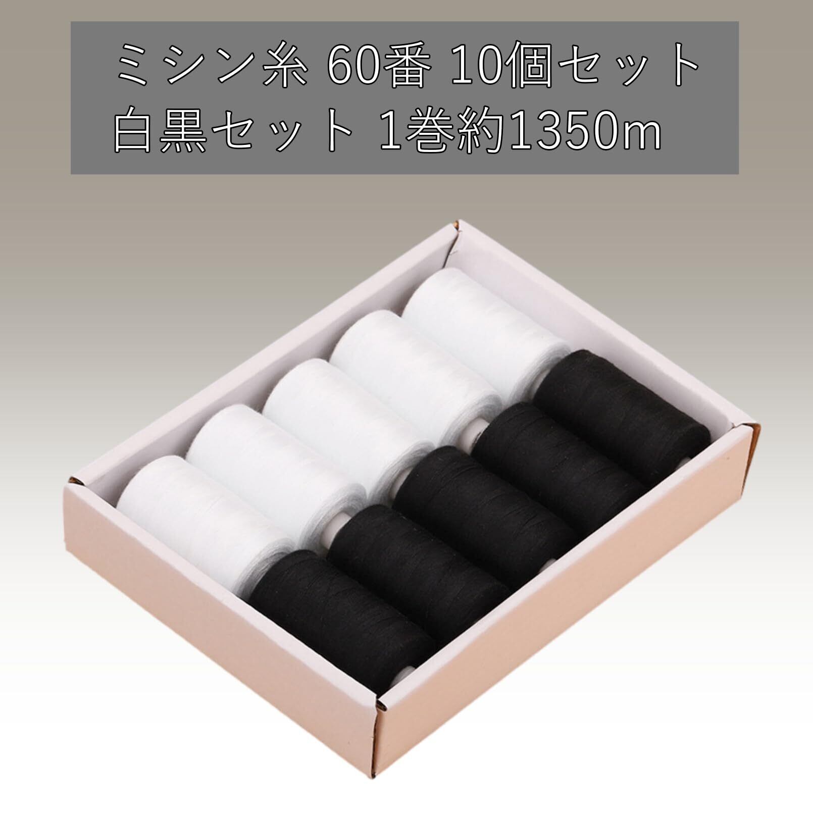 COZENTA ミシン糸 60番 黒 白 10個セット 普通地用 1個約1350m