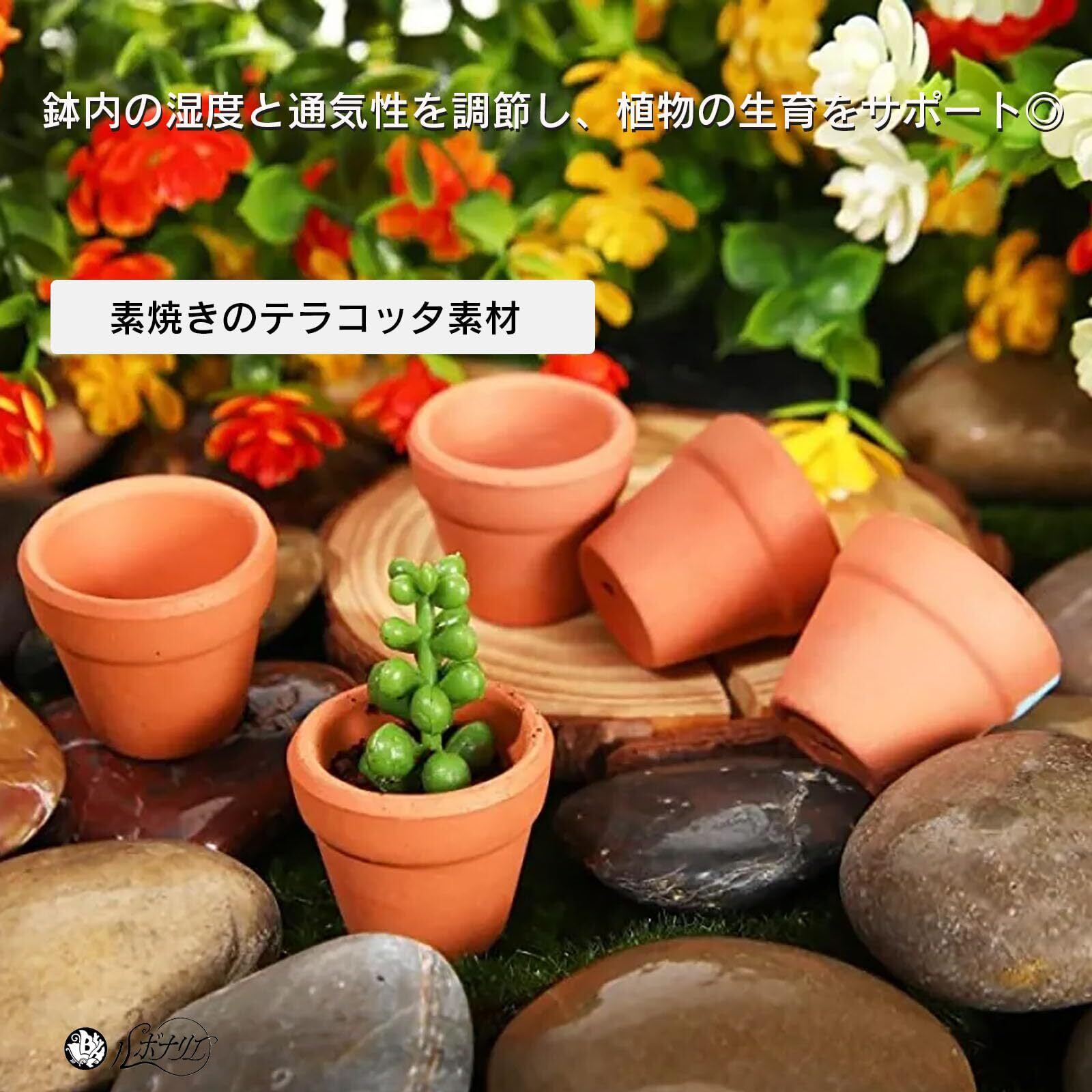 小さなサイズで、卓上や窓辺などのスペースに最適な素焼きポットです。10個セットをご用意しましたので、オフィスのデスク周りやリビングルームなど様々な場所の緑化を手軽に行うことができます。