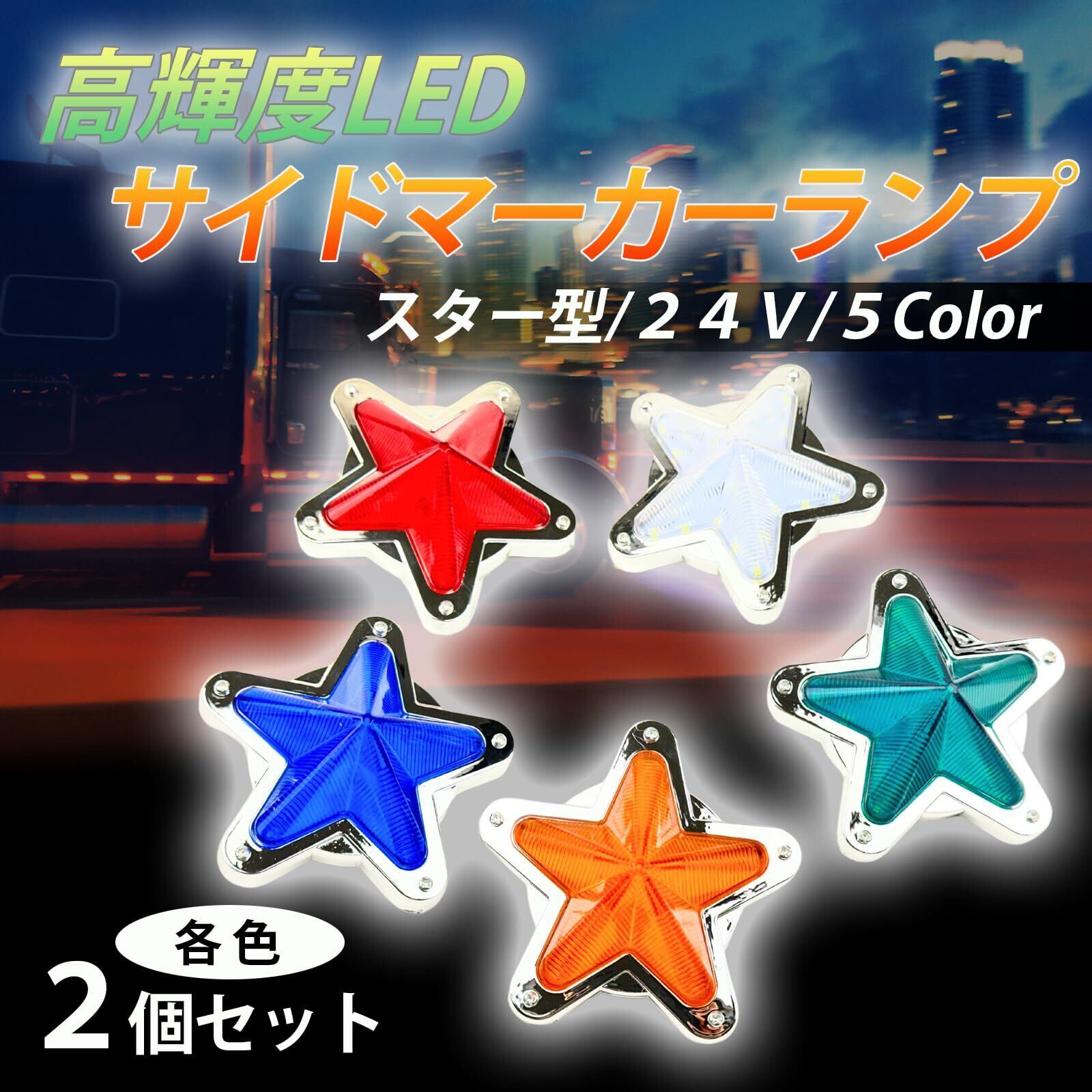 HTharros サイドマーカーランプ LED 24Ⅴ ライト 星 型 トラック 用 デコパーツ イルミネーション 車両 電飾 アクセサリー ホワイト 2個