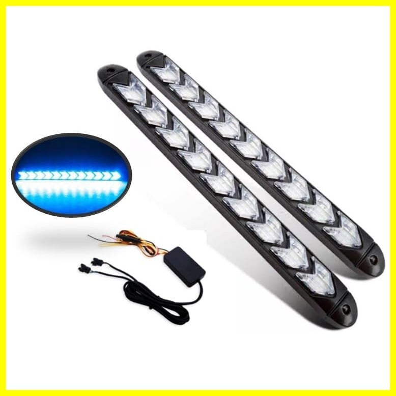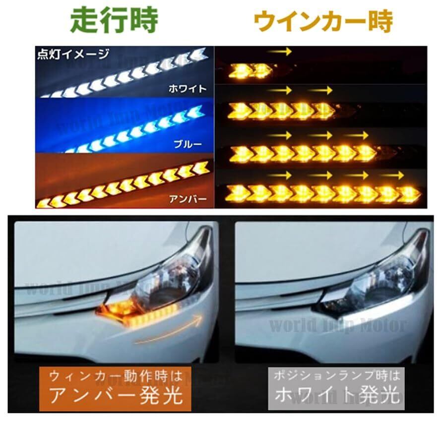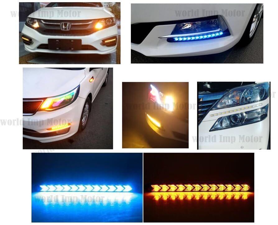 LED シーケンシャル 流れる ウインカー 9連 /12連 デイライト 12V 車 用 ライト 防水 2本セット 汎用 (9連 LED ブルー・アンバー)