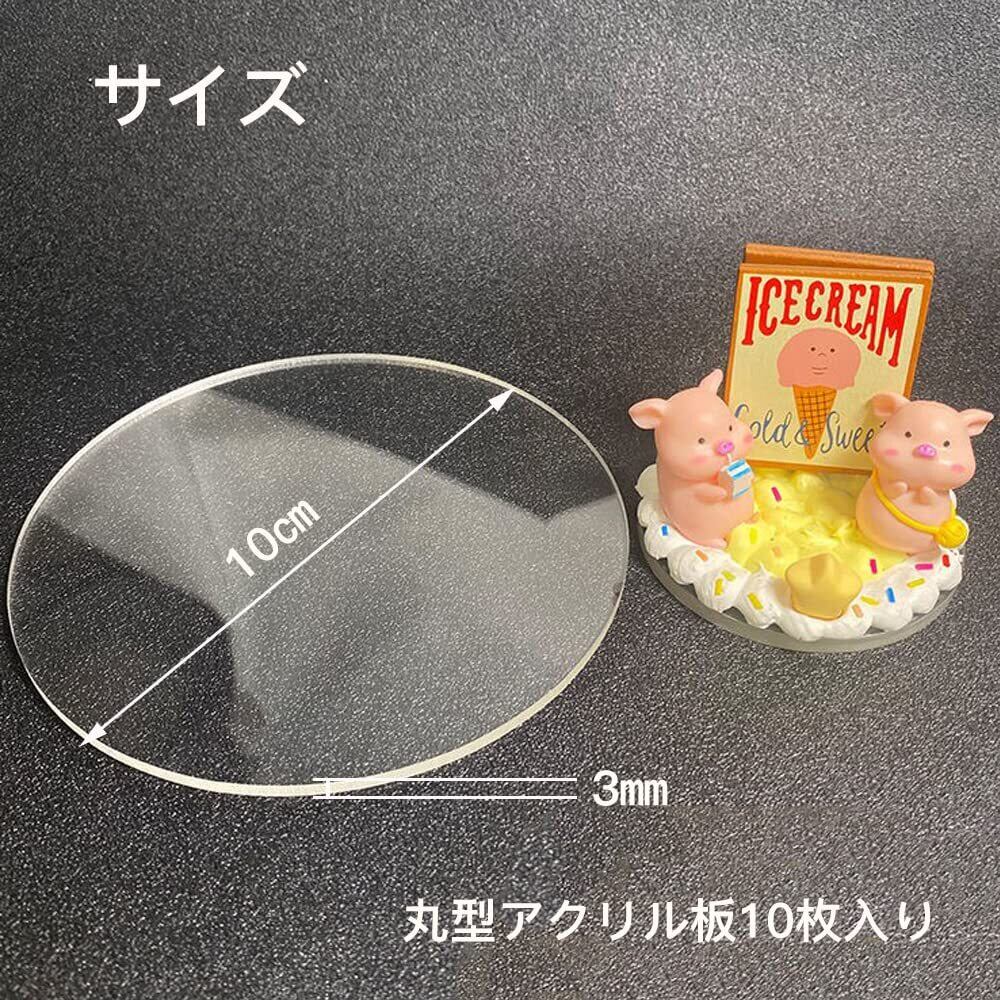 透明アクリル板 10枚直径100mm厚さ3mm 丸 アクリルプレート 看板 インテリア 撮影台 標本 展示 キーホルダー 置物 手工芸