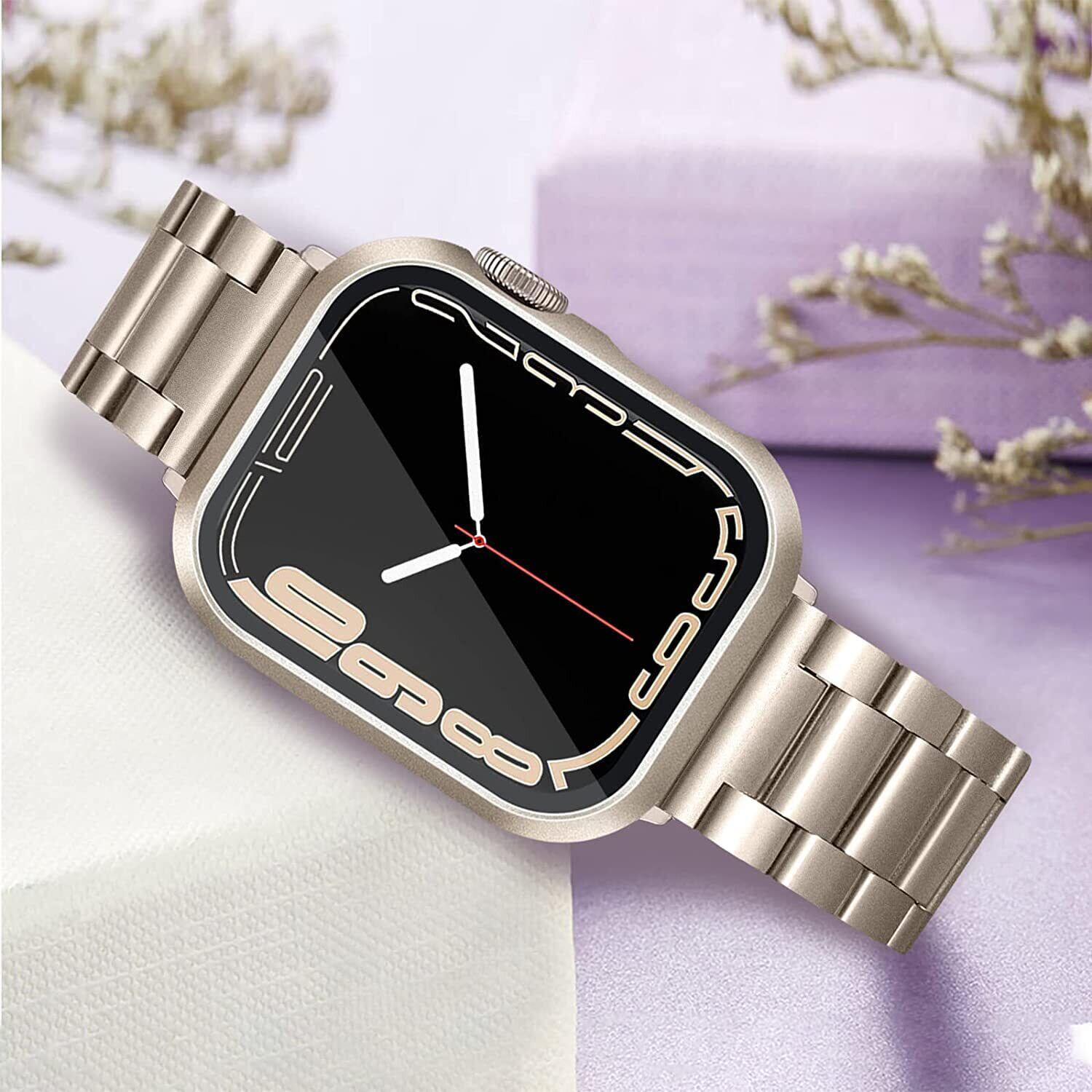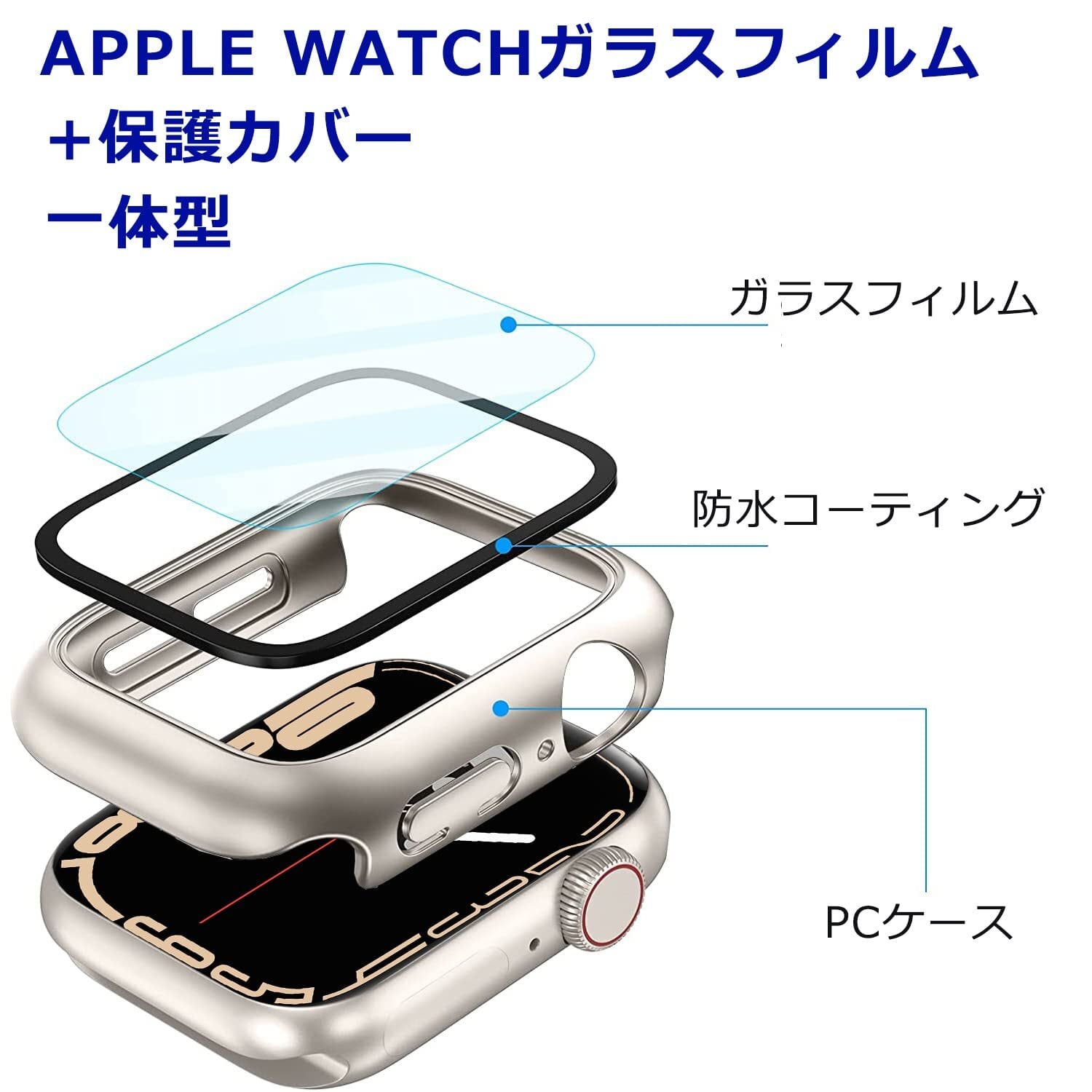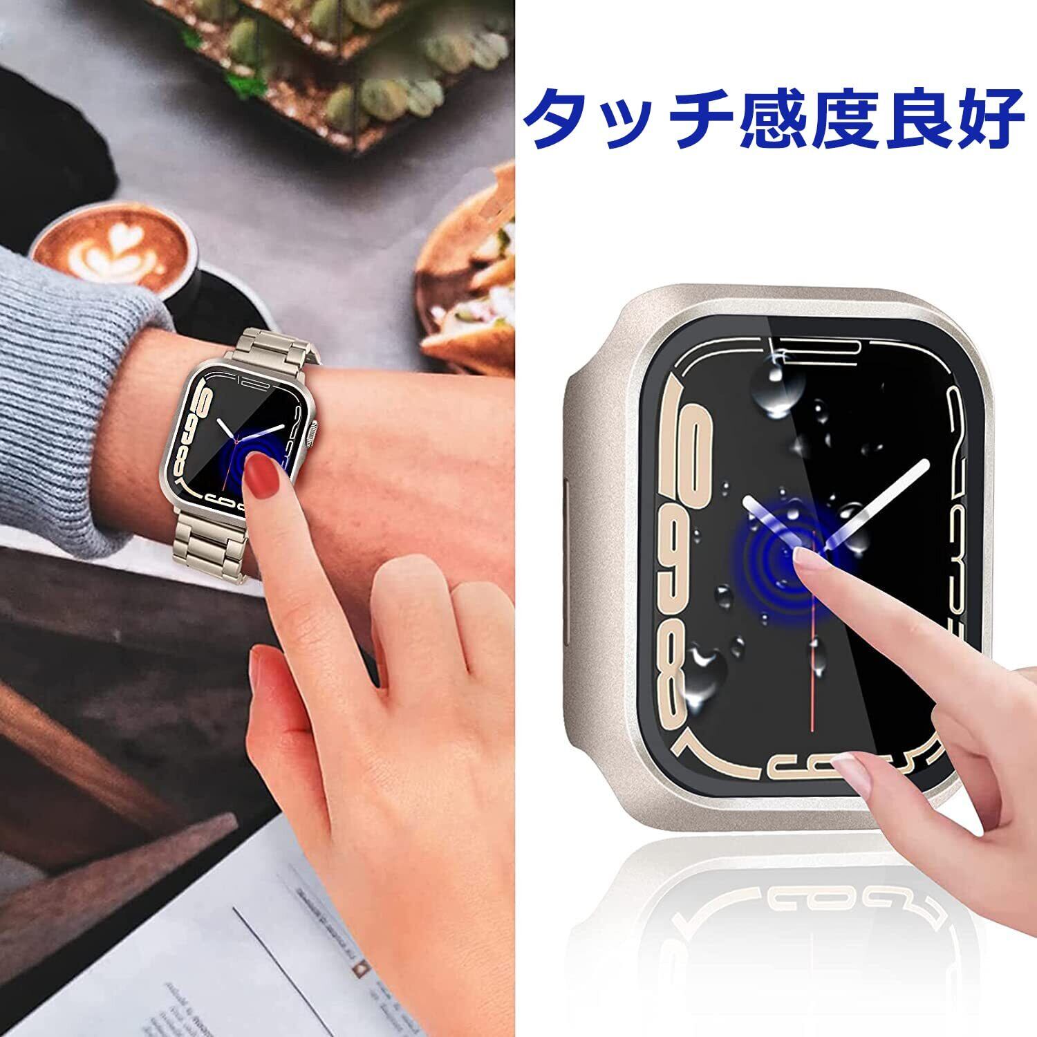 DIKESHGU for Apple Watch 防水ケース Series9/7/8 41mm/45mm アップルウォッチ シリーズ用保護カバー ガラスフィルム 一体型 PC素材 タッチ感良好 アップルウォッチ第9/8/7世代 用 カバー Apple Watch 9/7/8 アクセサリー (スターライト,45mm)