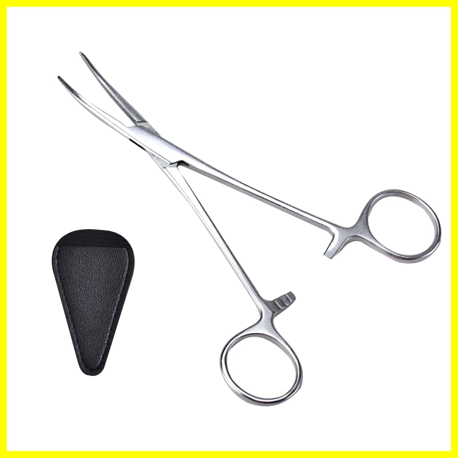 DFsucces 毛抜きかんし 反型 ペット耳の毛抜き用 125mm クリーニング ピンセット お手入れ用品 ペットの耳の毛抜きや手芸、裁縫に(革ケース付き)