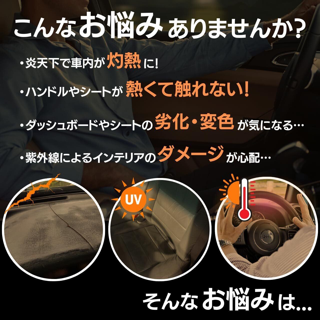 【紫外線カット】 強力な紫外線カット機能で車内の温度上昇の阻止と車内インテリアを保護し、長時間の野外駐車でも安心
