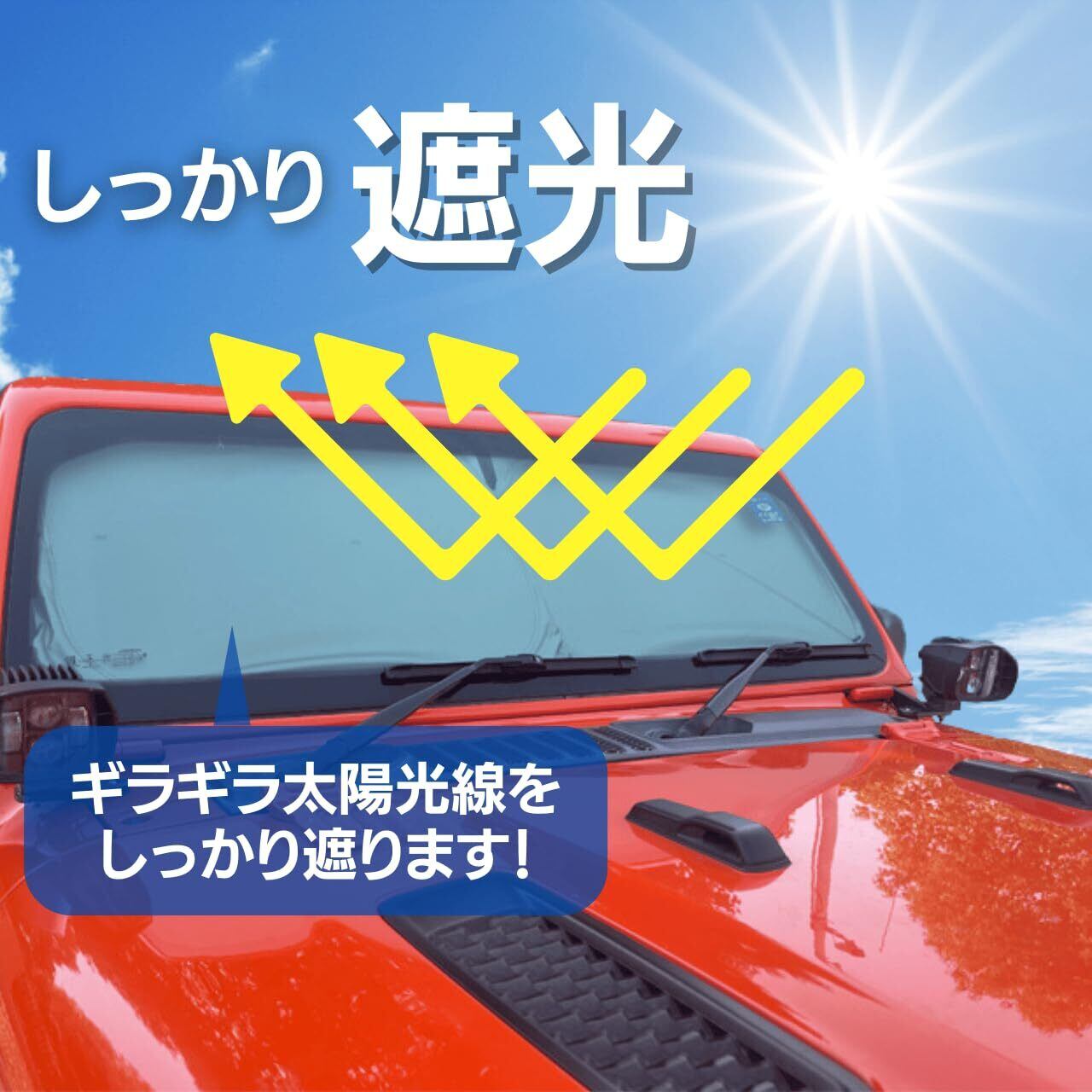 Jeep サンシェード フロント 日除け 遮光 サンバイザー 145×52cm 折りたたみ式 ラングラー カーサンシェード 暑さ対策 紫外線カット