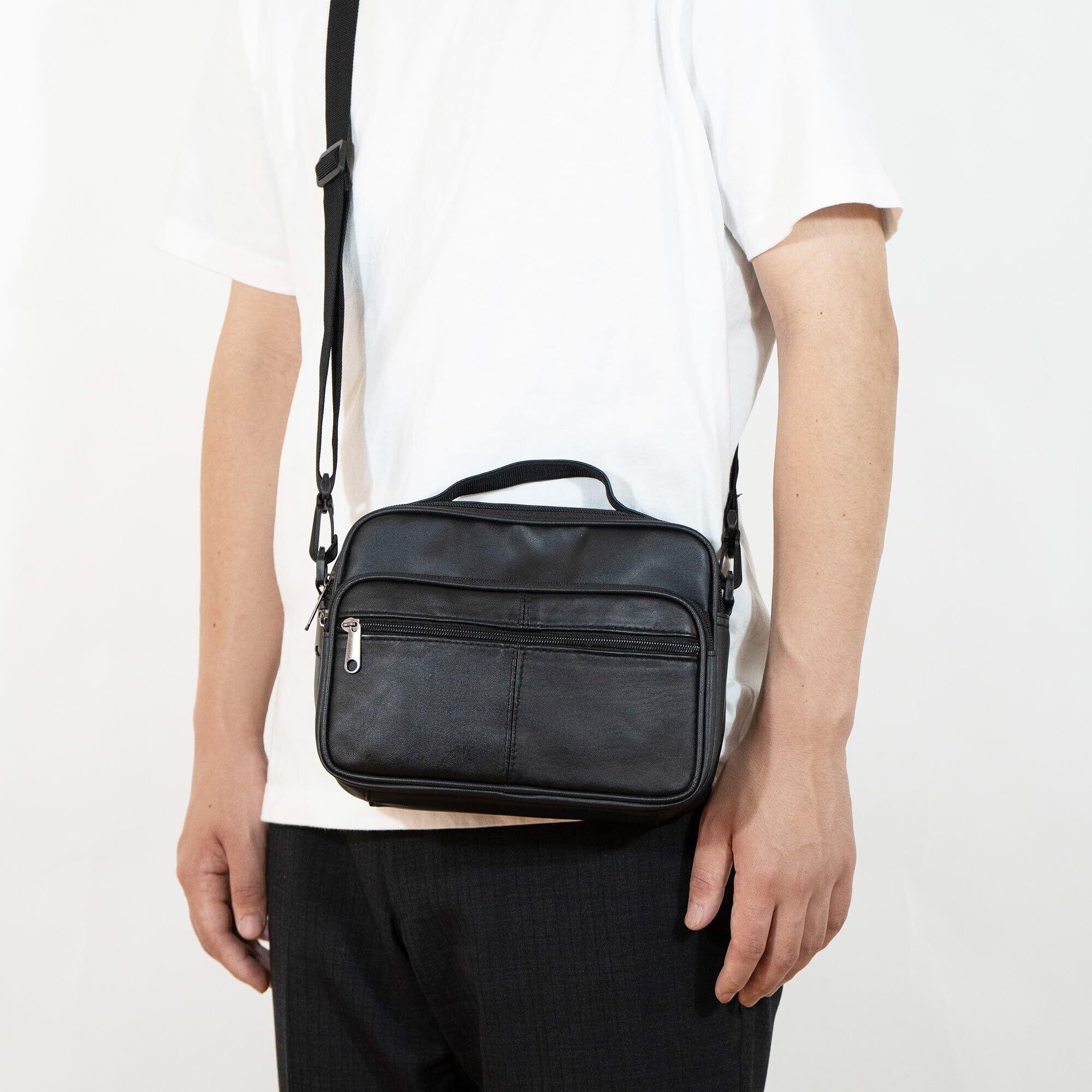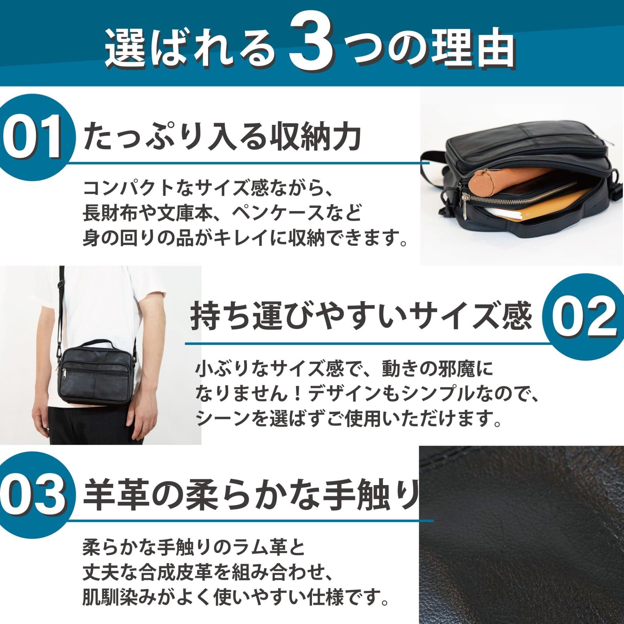 [ラッフィナート] メンズ ショルダーバッグ 小さめ 革 アウトドア 軽い レザー ハンドバッグ 2way 斜めがけ 革 サコッシュ ウエストバッグ 大容量 ボディバッグ カバン カジュアル フォーマル 旅行 黒 父の日