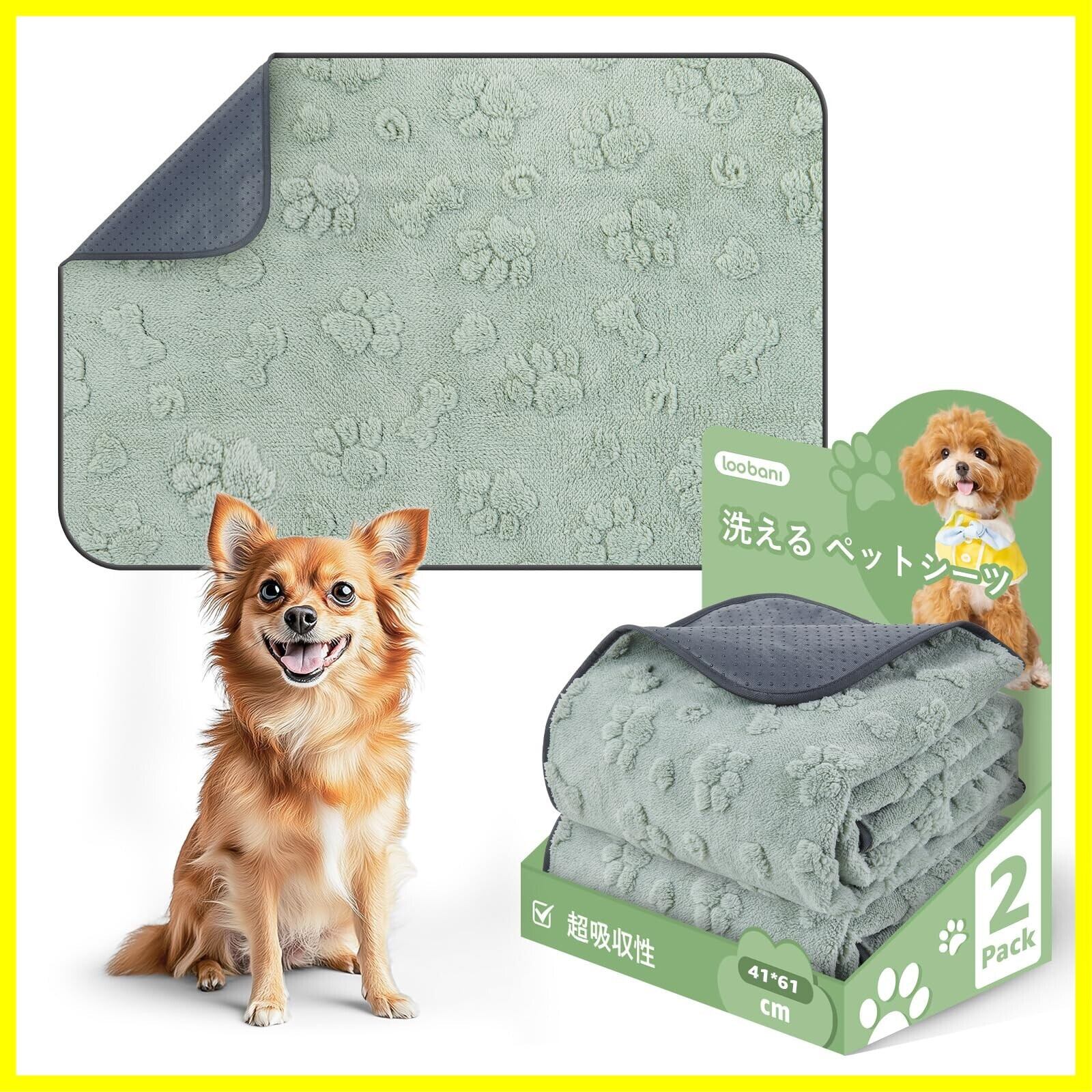 LOOBANI 超吸収 洗えるペットシーツ 漏れ防止 ペットシーツ 洗える 滑り止め おしっこシート ペットシーツ 洗える 丸ごと洗える 速乾 中型 大型 犬・猫 犬用 おしっこパッド 丸ごと洗える エコ 制菌 消臭 介護 四季通用 繰り返し使える (41*61CM, 2, 枚)
