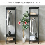 【棚板が可動式で使い勝手抜群!】収納するものに応じて棚板の位置を調整できるため、ハンガーラックの活用の幅が広がります。お好みの高さに設定することで、衣類だけでなく書籍や小物なども無理なく収納できます。