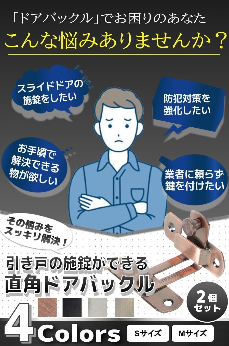 fogman ドアバックル 90度 引き戸 鍵 ロック 直角 選べるカラー 選べるサイズ 2個セット (銀, Sサイズ)