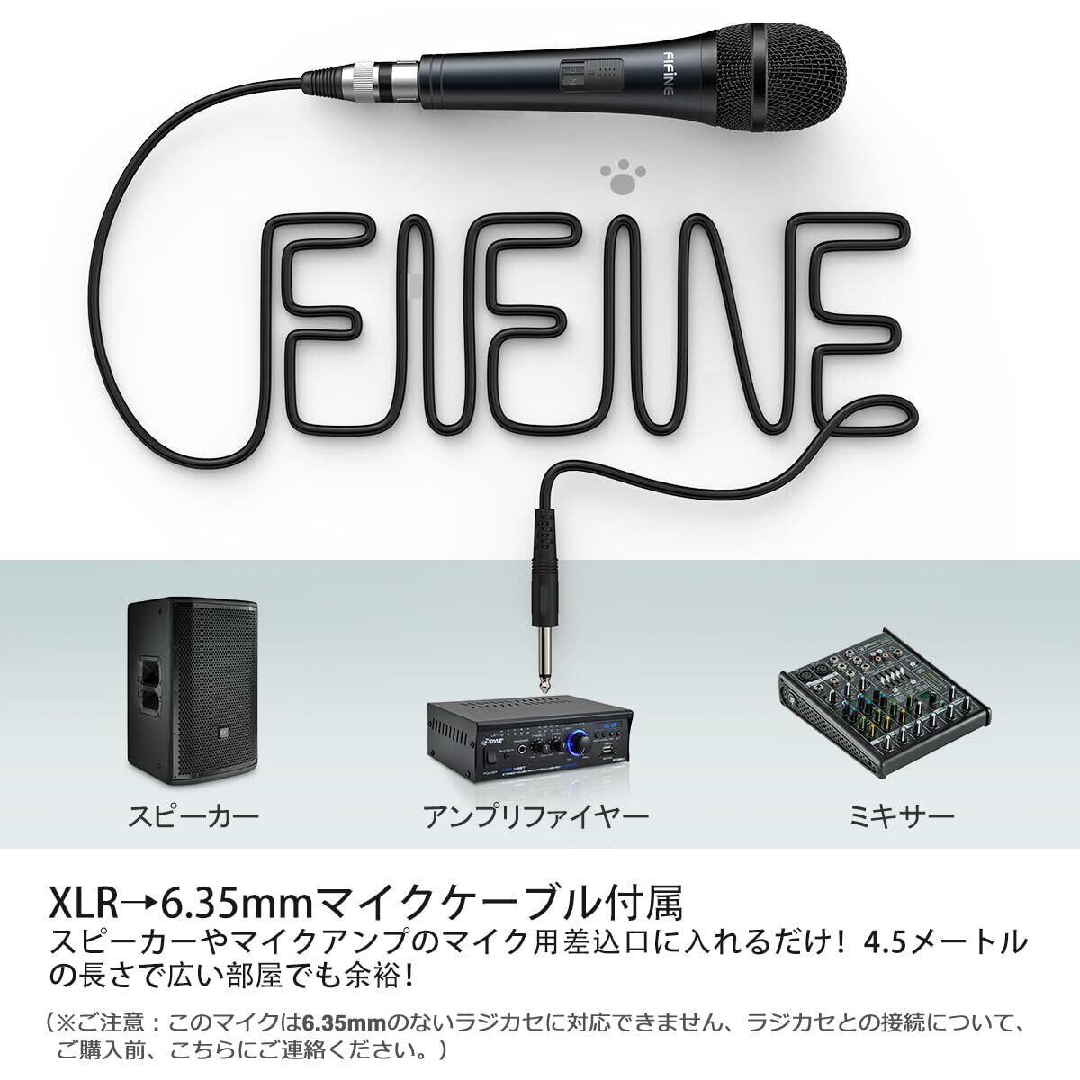 FIFINE マイク ダイナミックマイク ボーカルマイク カラオケマイク 単一指向性 家庭カラオケ イベント スピーチ 会議 録音 6.35mmプラグ 長さ4.5m XLR マイクケーブル 付属 K6