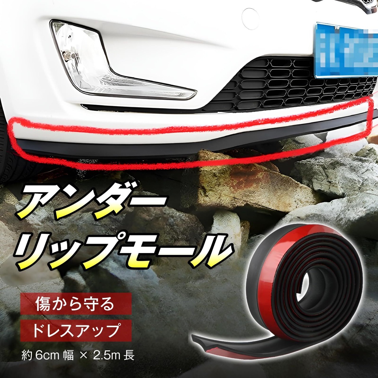 【傷から守る】フロントリップスポイラーは、車のフロントを飛び石や擦り傷から守るガードとしても機能します。防水性に優れたゴムモールを採用し、雨の日も安心してご使用いただけます。自家用車のアップグレードに最適なアクセサリーです。