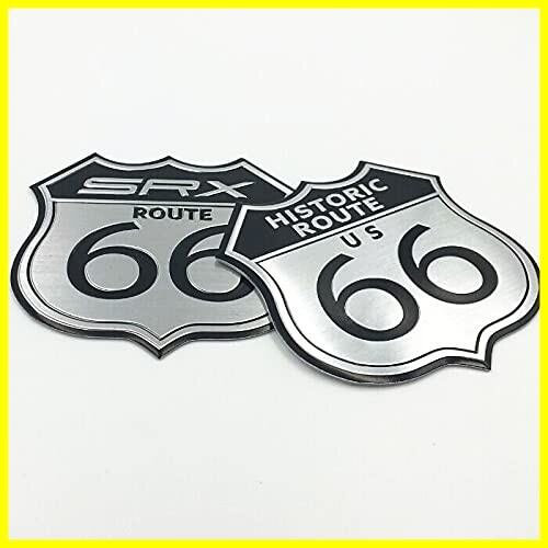 fogman エンブレム ルート66 ステッカー 車 バイク アルミ製 レトロ デカール Route66 グッズ 2個セット