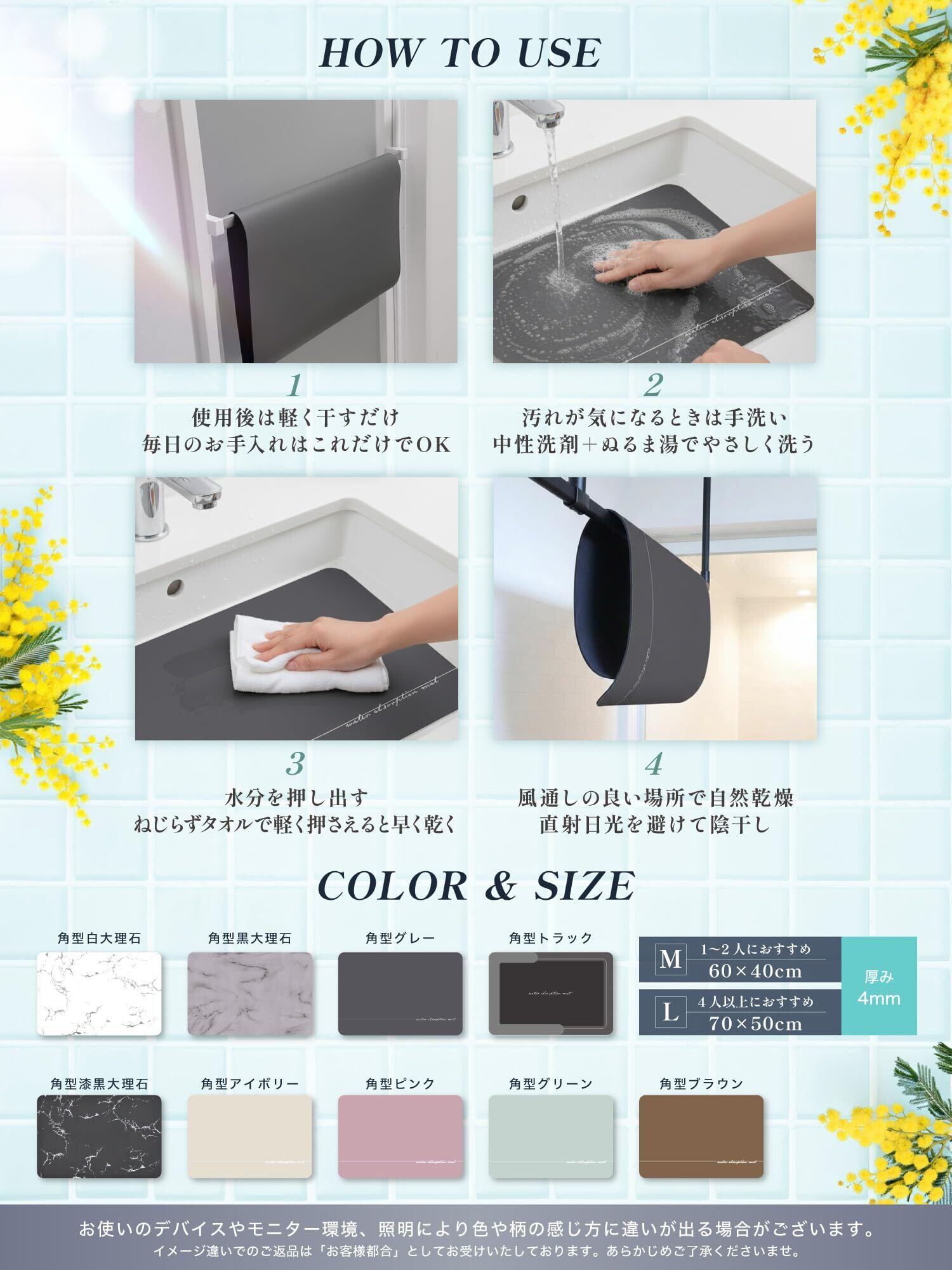 【素早い乾燥力が魅力!】高品質な珪藻土を使用しており、水分を瞬時に吸収。肌触りが良く、細菌の繁殖を抑える効果もあるため、清潔感を保ちつつ気持ちの良い環境を整えます。特にお子様やペットのいるご家庭におすすめです。