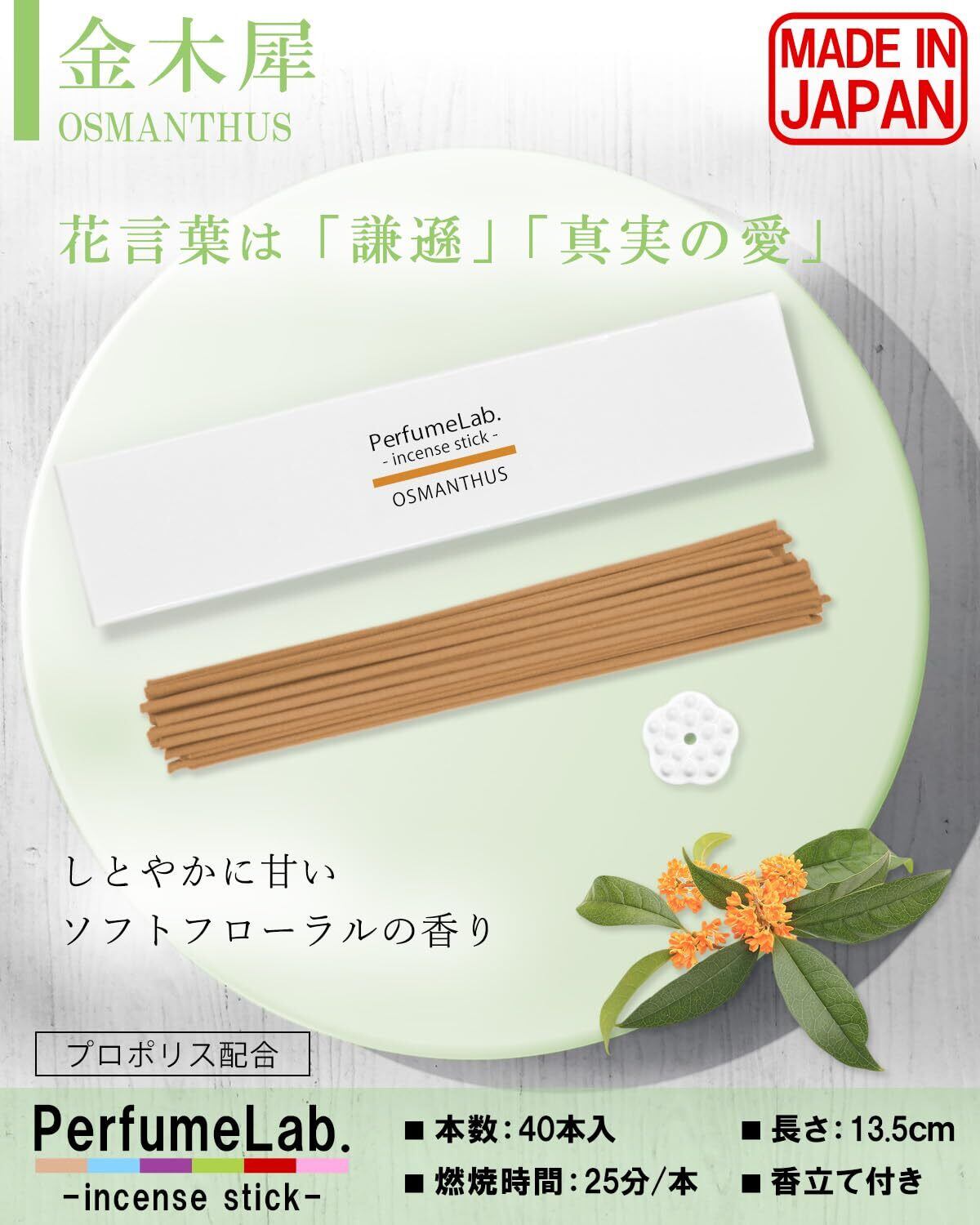 【雑誌Poco’ce掲載品】 日本製 お香 アロマ 線香 お香立て セット (40本, キンモクセイ)