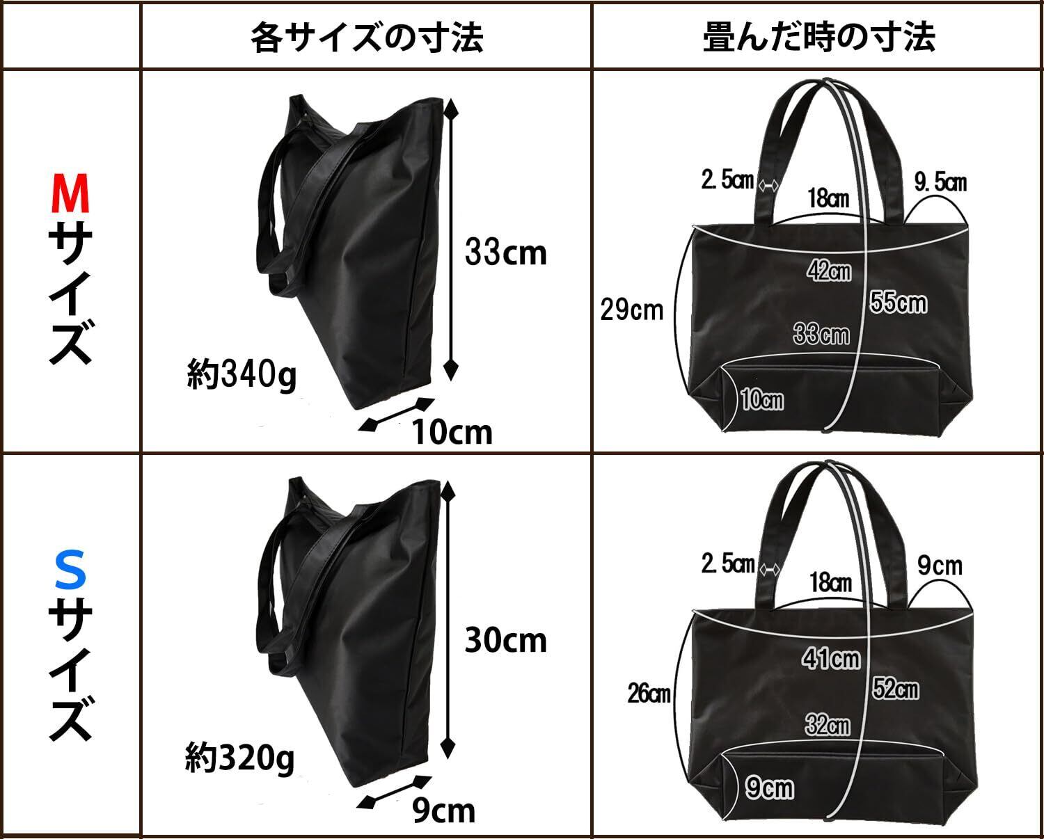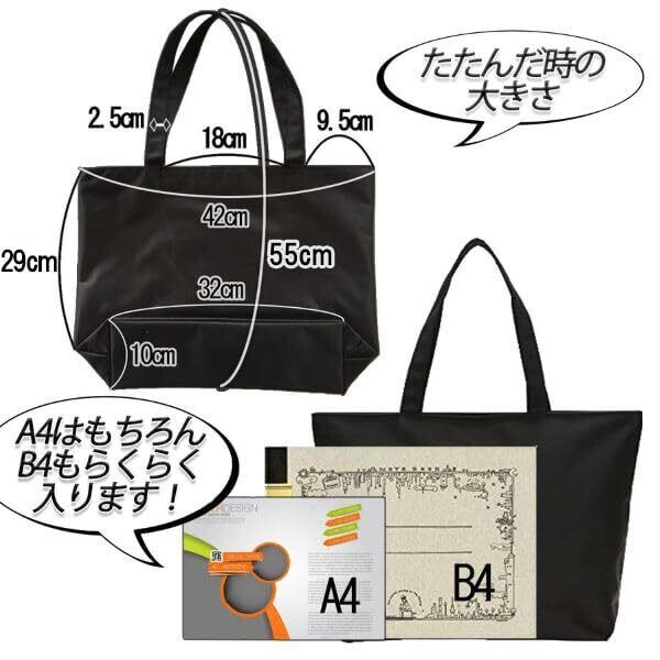 SweetBaku サブバッグ A4対応 黒 軽量 折りたたみ トートバッグ ビジネスバッグ