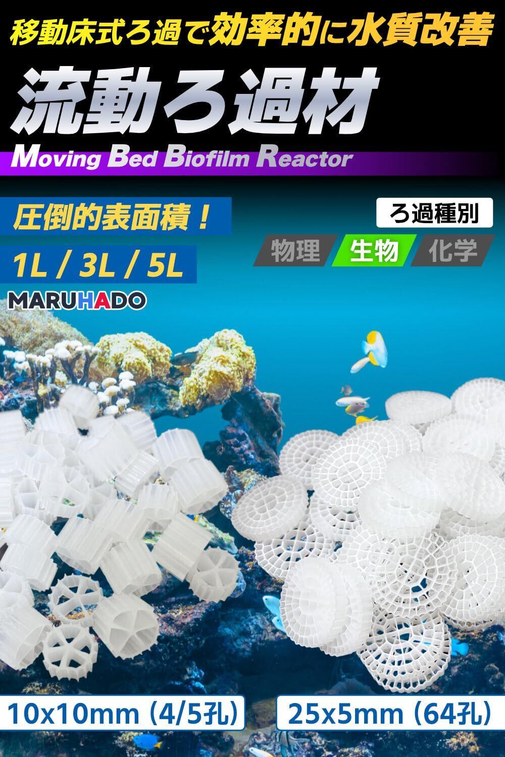 MARUHADO 流動濾過材 流動ろ材 MBBR 水質浄化 アクアリウム 流動床式 生物濾過 濾過槽用 ろ過材 水族館 25x5mm 1リットル(160g)