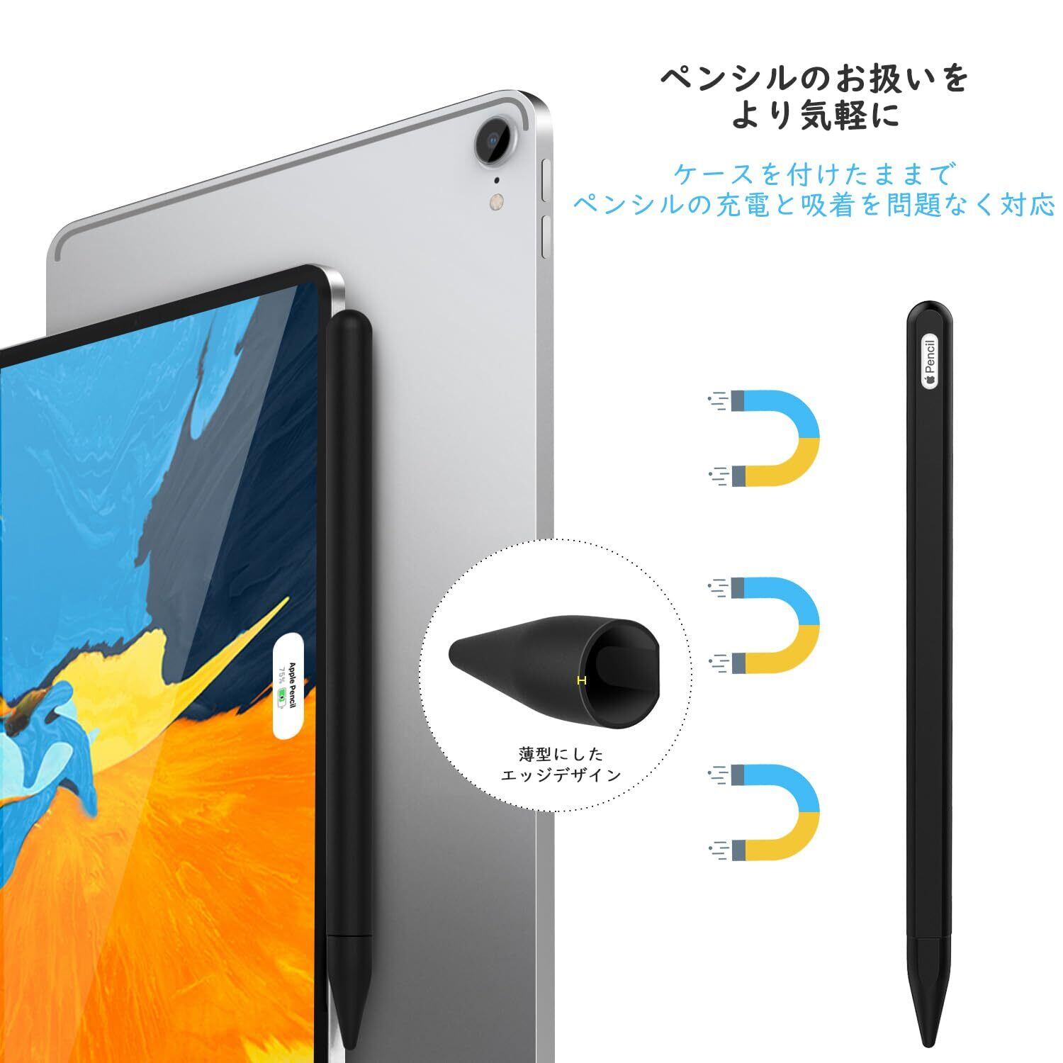 Apple Pencil ケース 第2世代専用 MoKo アップルペンシルカバー ペン先保護キャップ付き 吸着充電対応 握りやすい 滑り止め iPencil 2 カバー 落下防止 全面保護 iPad air5 2022 / iPad air4 2020 / iPad mini6 2021 / iPad Pro 11 / iPad Pro 12.9 適用 Black