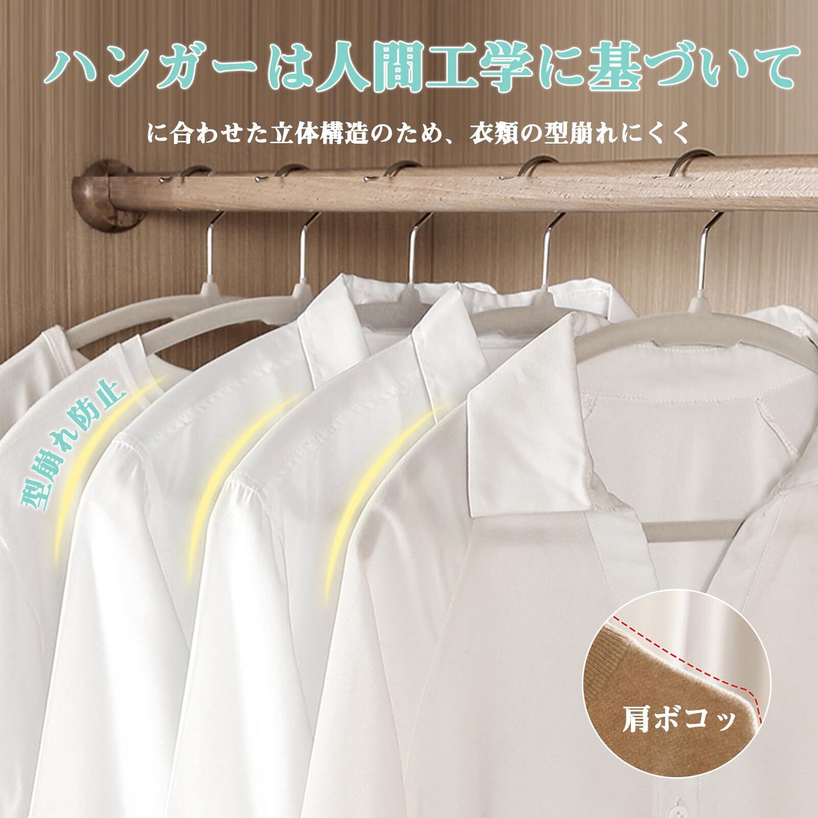 【独特なデザイン】人間工学に基づいて、型崩れにくい曲線を設計しました、衣類を掛ける時も肩の部分はしわになりにくく、変形することもありません。