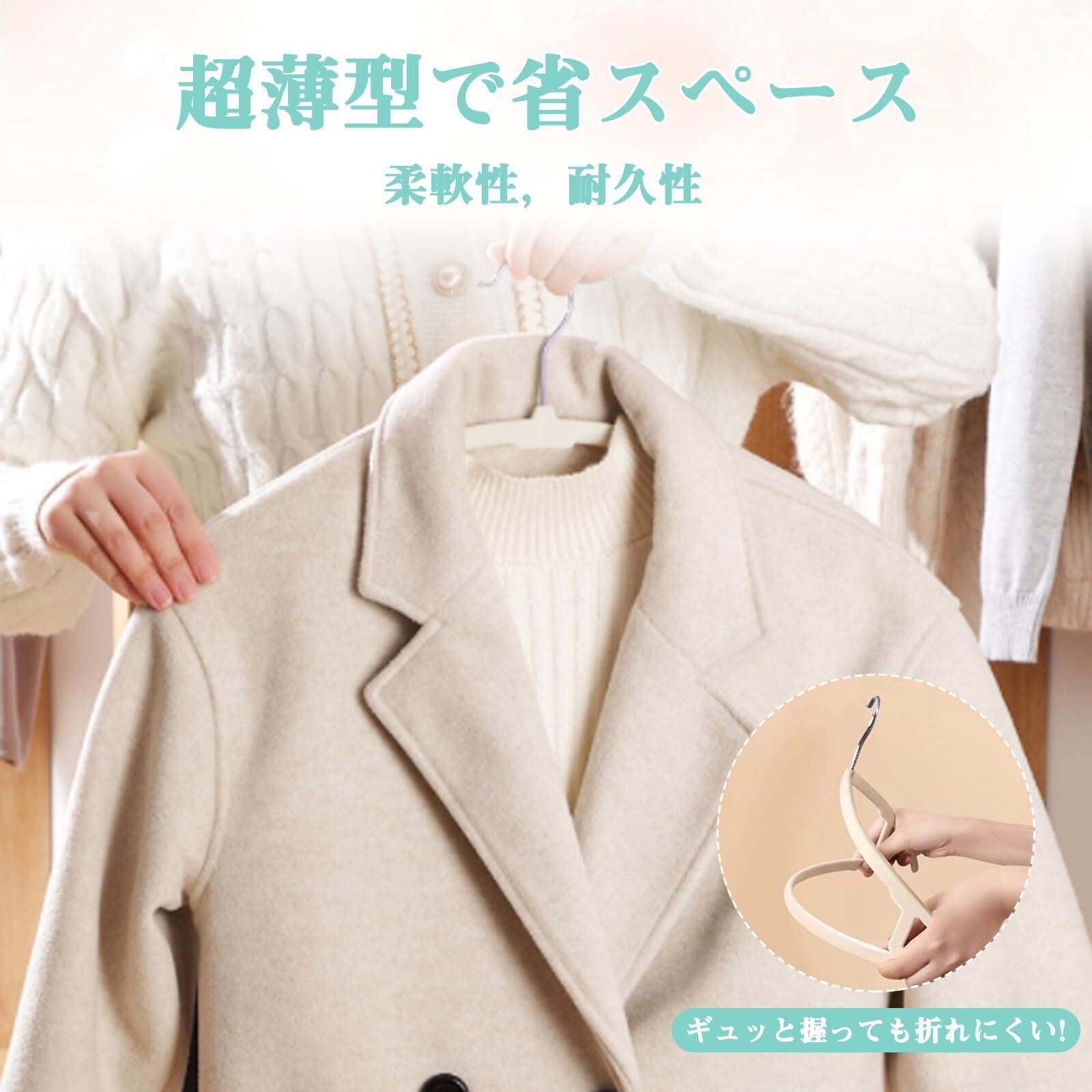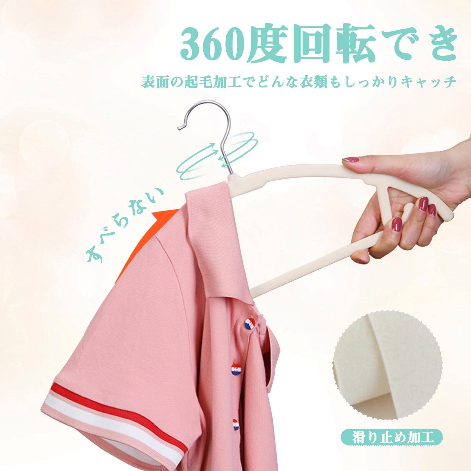 【省スペー】厚みはわずかに0.5cm、スリムタイプのハンガーで、クローゼットの中でかさばらなく、スペースを有効活用して、たくさんの衣類をきれいに収納することが可能に。また、凹み部分のデザインはキャミソールなどの紐状のお洋服も掛けやすくなっており、安心に使えるハンガーです。