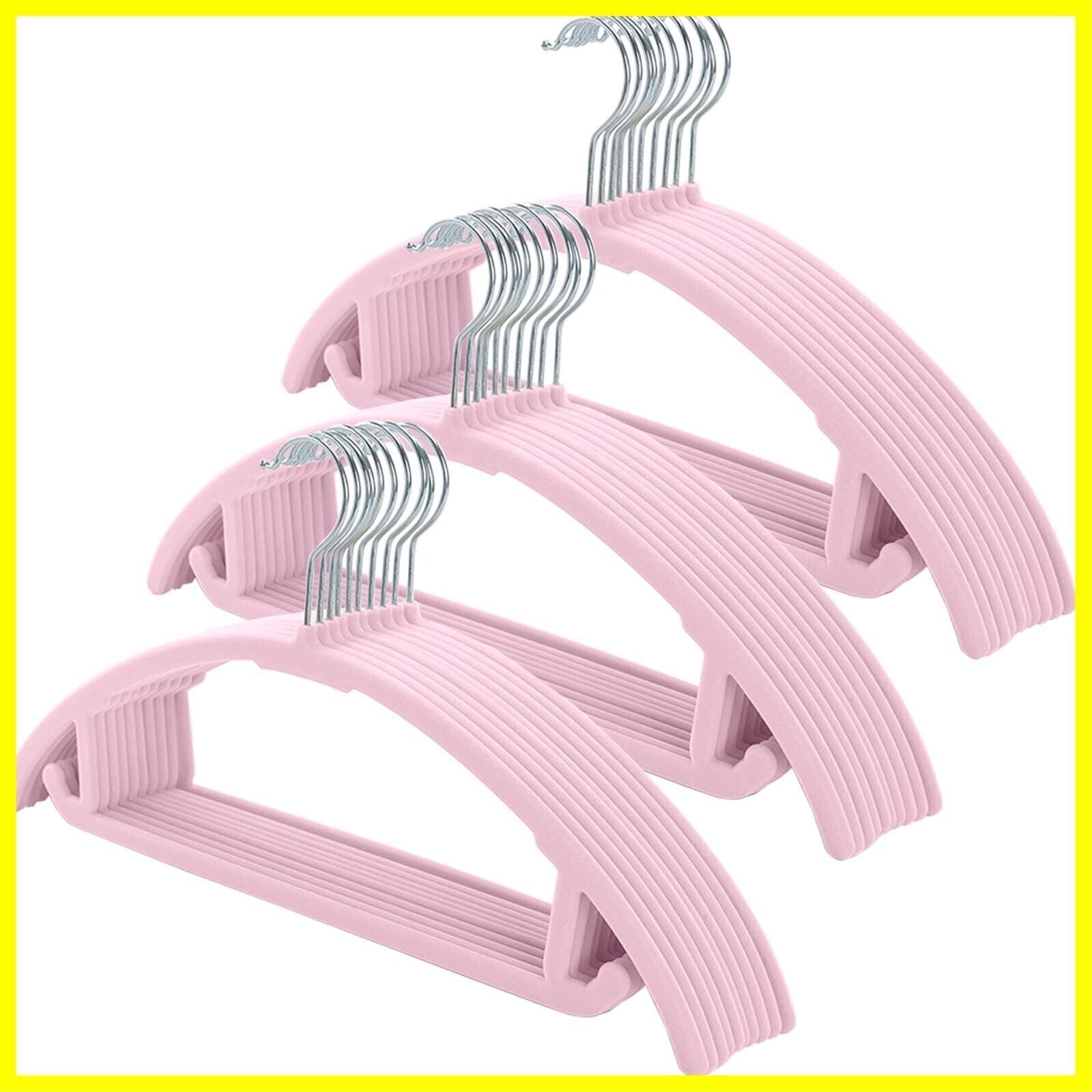 AYO ハンガーすべらない 30本組 滑らないハンガー かたくずれ防止 360度回転フック 軽量 曲げれる 頑丈 収納 ベルベット製 ピンク