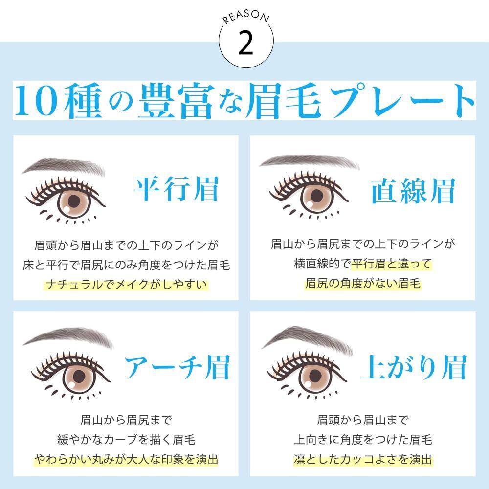 【10種の豊富な眉毛プレート】並行眉・直線眉・アーチ眉・上がり眉など、好みの形に合わせてお手入れが可能!