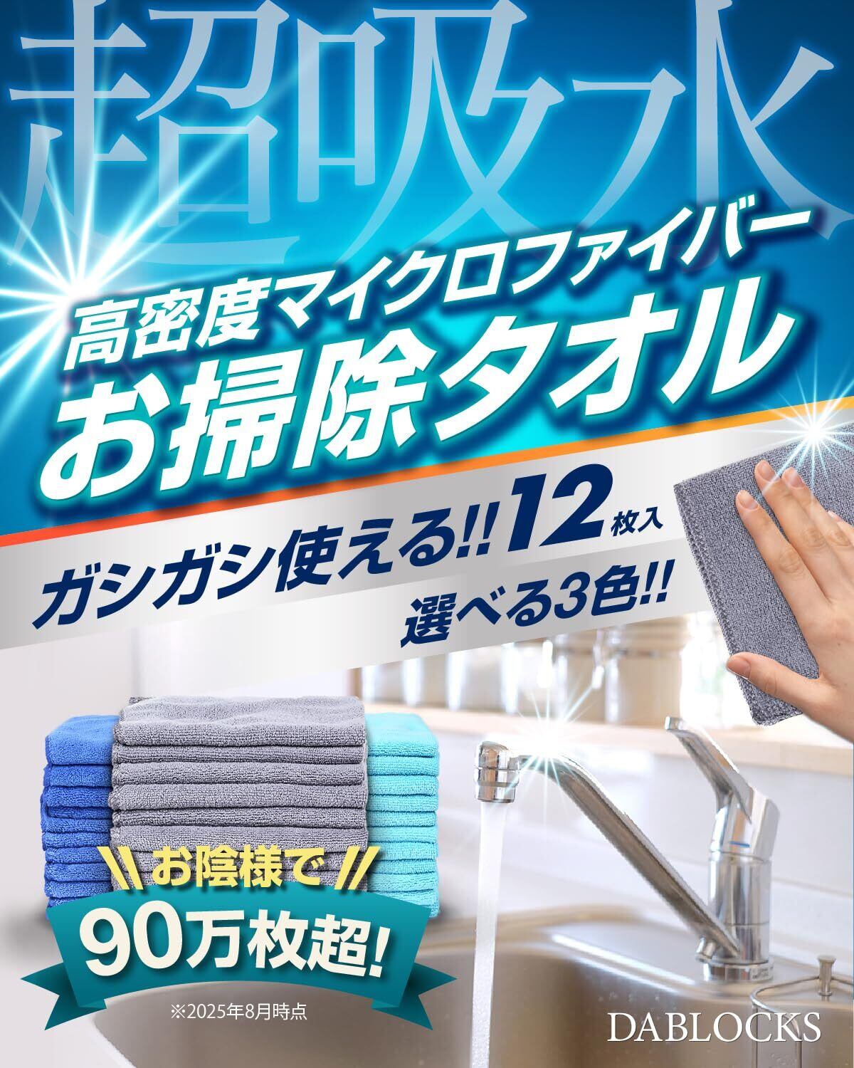 DABLOCKS マイクロファイバークロス ふきん お掃除タオル 30×30cm、12枚セット(グレー)