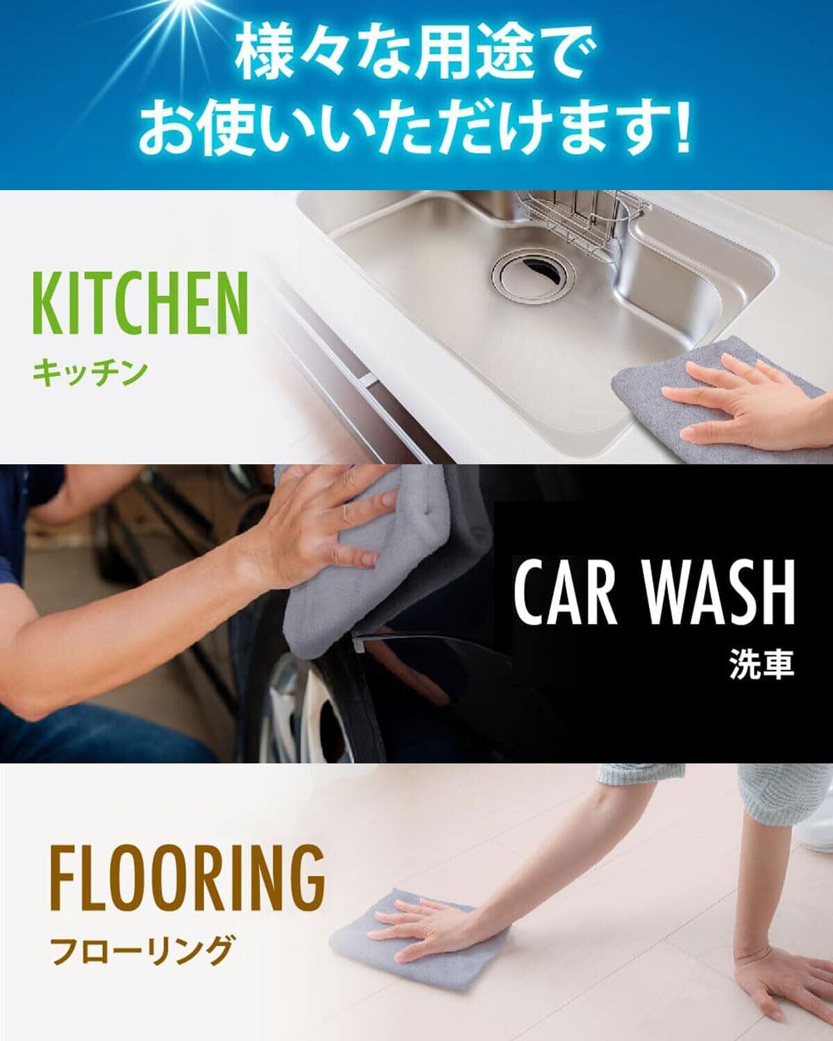 様々な用途でご使用頂けます(台ふきん、テーブル、フローリング、洗車等)