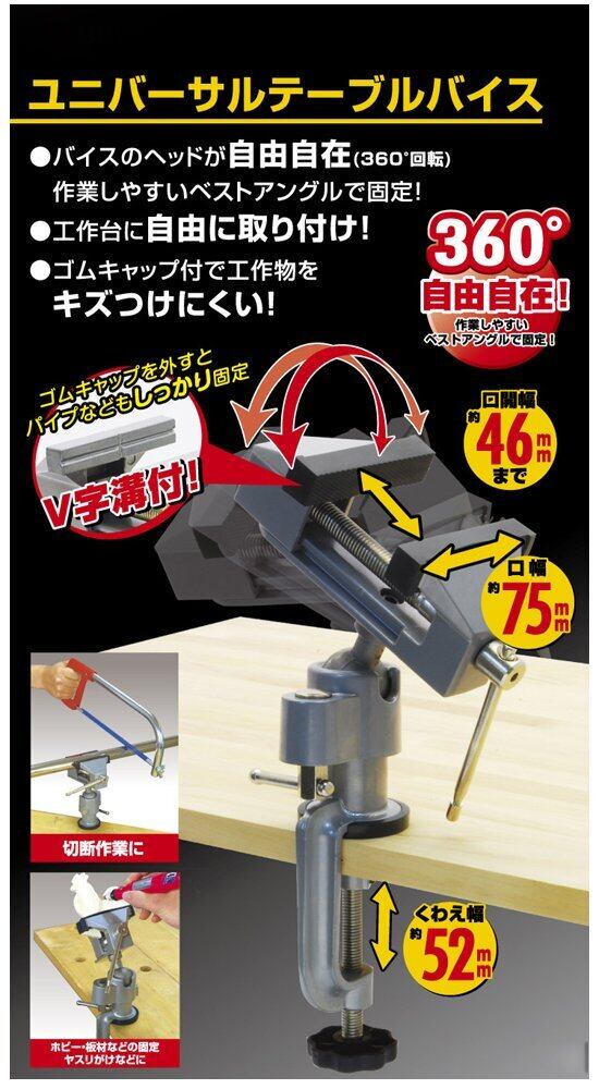 バイスのヘッドが自由自在(360°回転)作業しやすいベストアングルで固定!