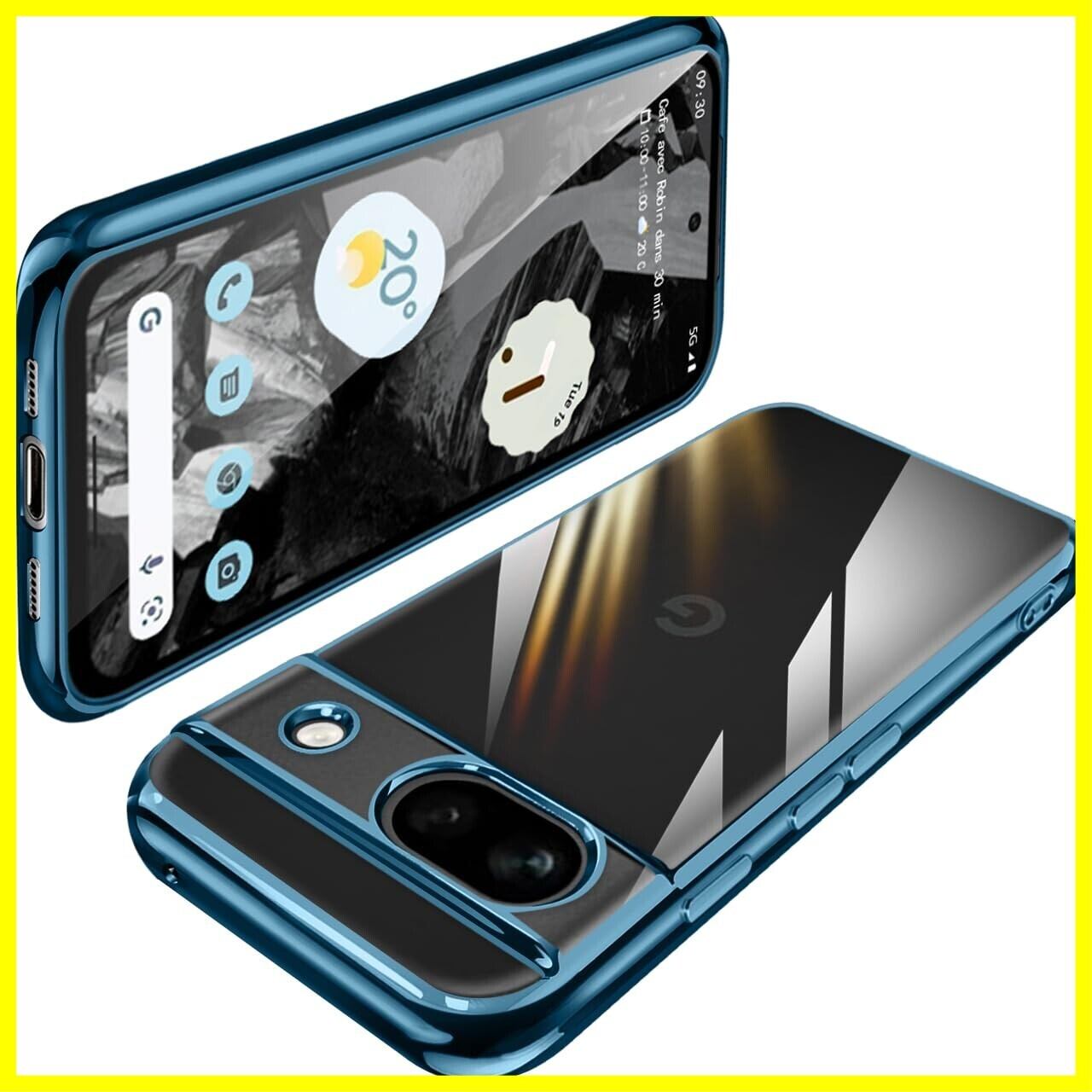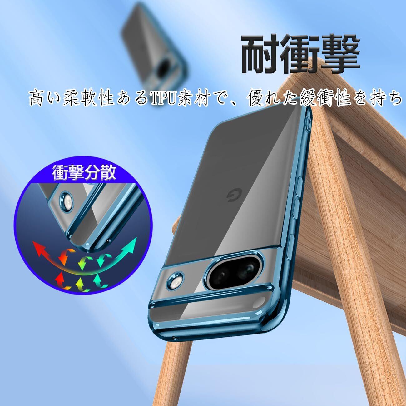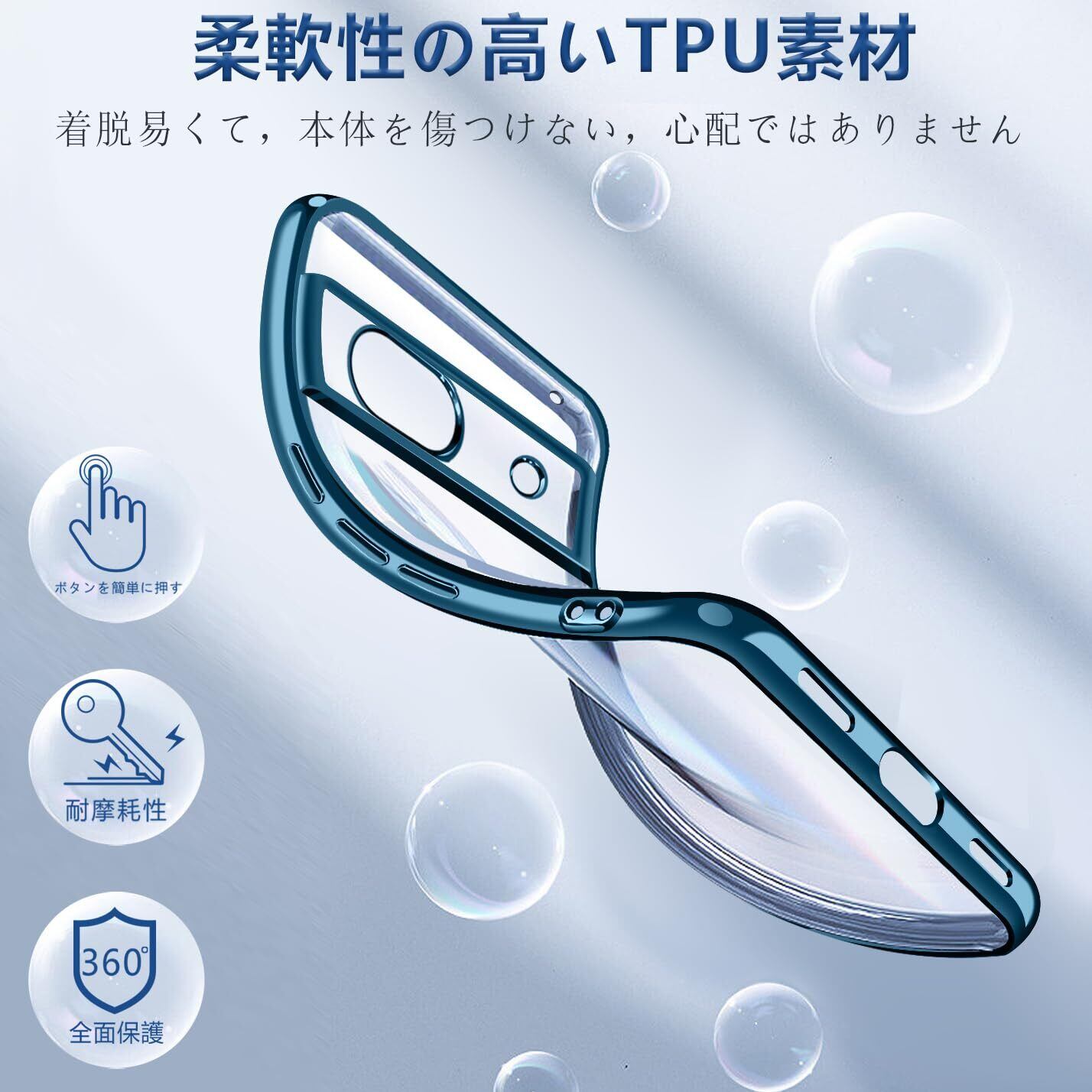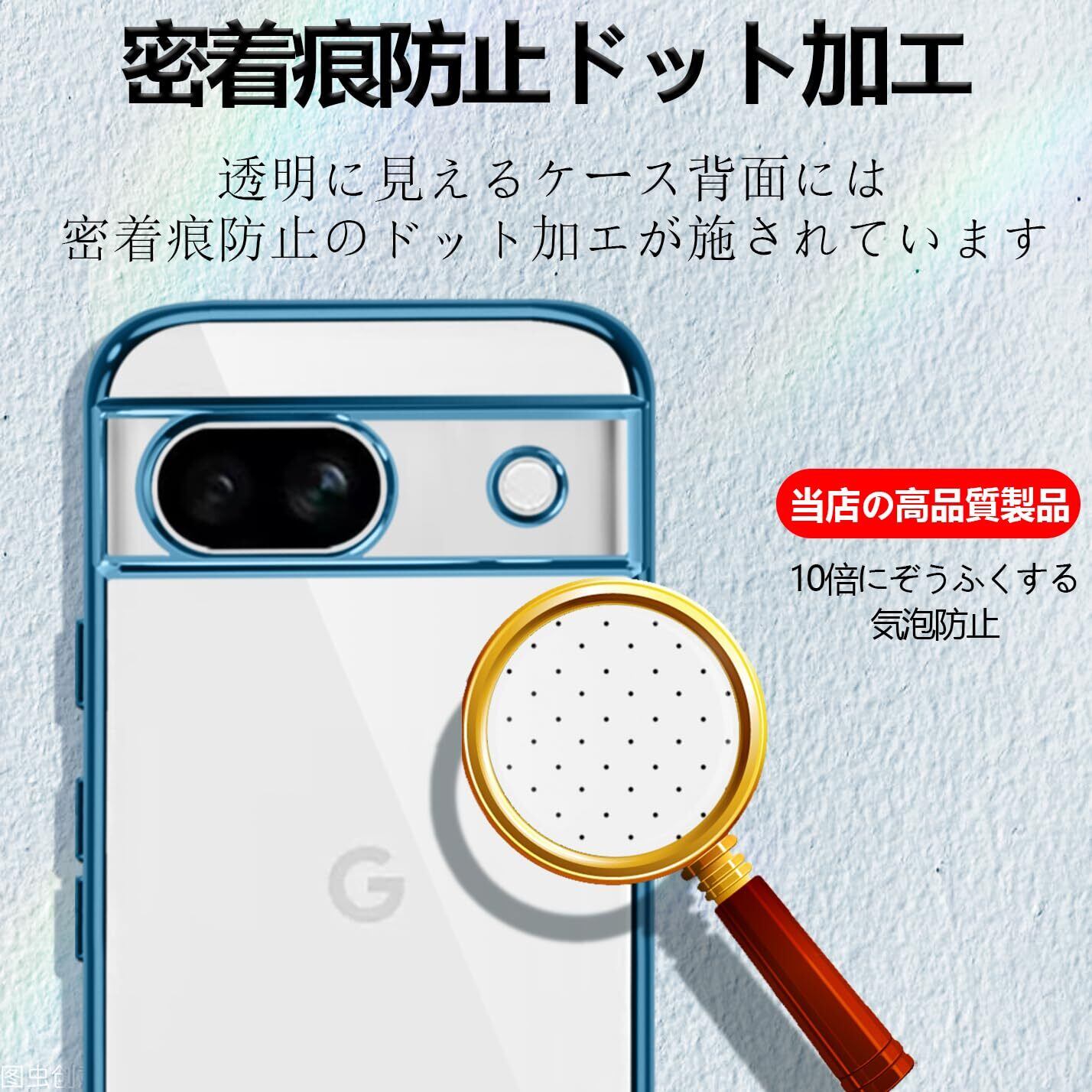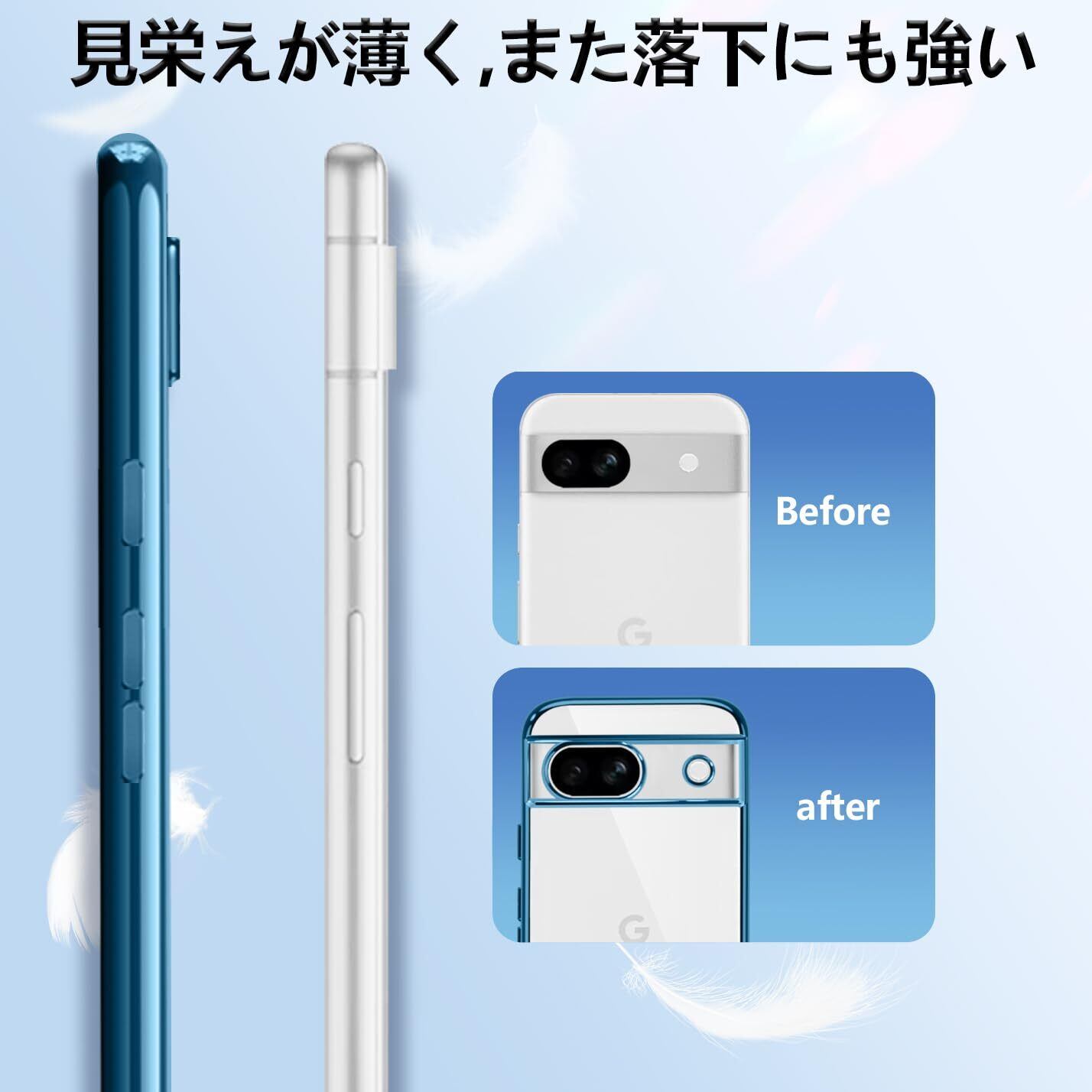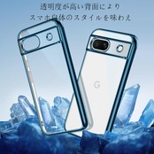 Google Pixel8a ケース クリア TPU 透明 薄型 軽量 グーグル ピクセル 8a スマホケース 耐衝撃 メッキ加工 ソフト 人気 ワイヤレス充電対応 (ブルー)