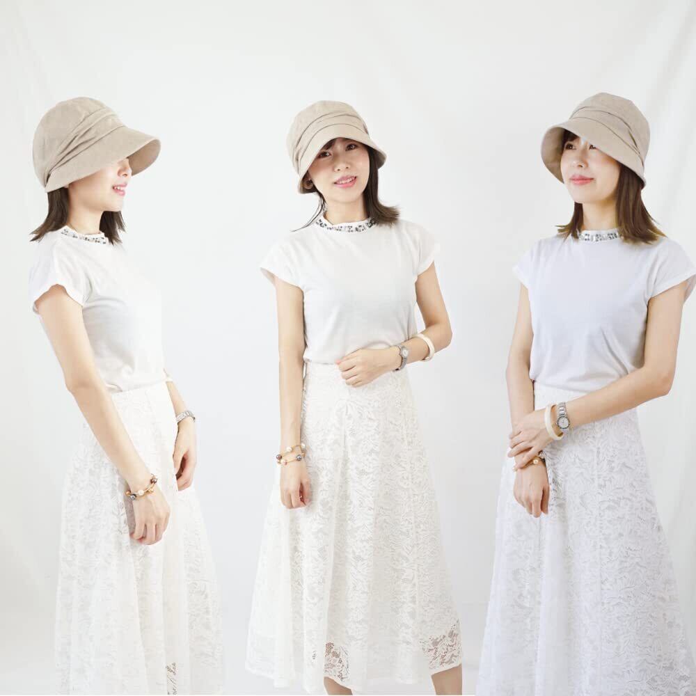 [Superbian] レディース帽子 春夏 UVカット帽子 深め つば広帽子 マジックテープサイズ調整 54~58cm 小顔効果 ふんわりタックデザイン 紫外線対策 母の日 プレゼント キャスケットレディース 女性用ハット 折り畳み可能