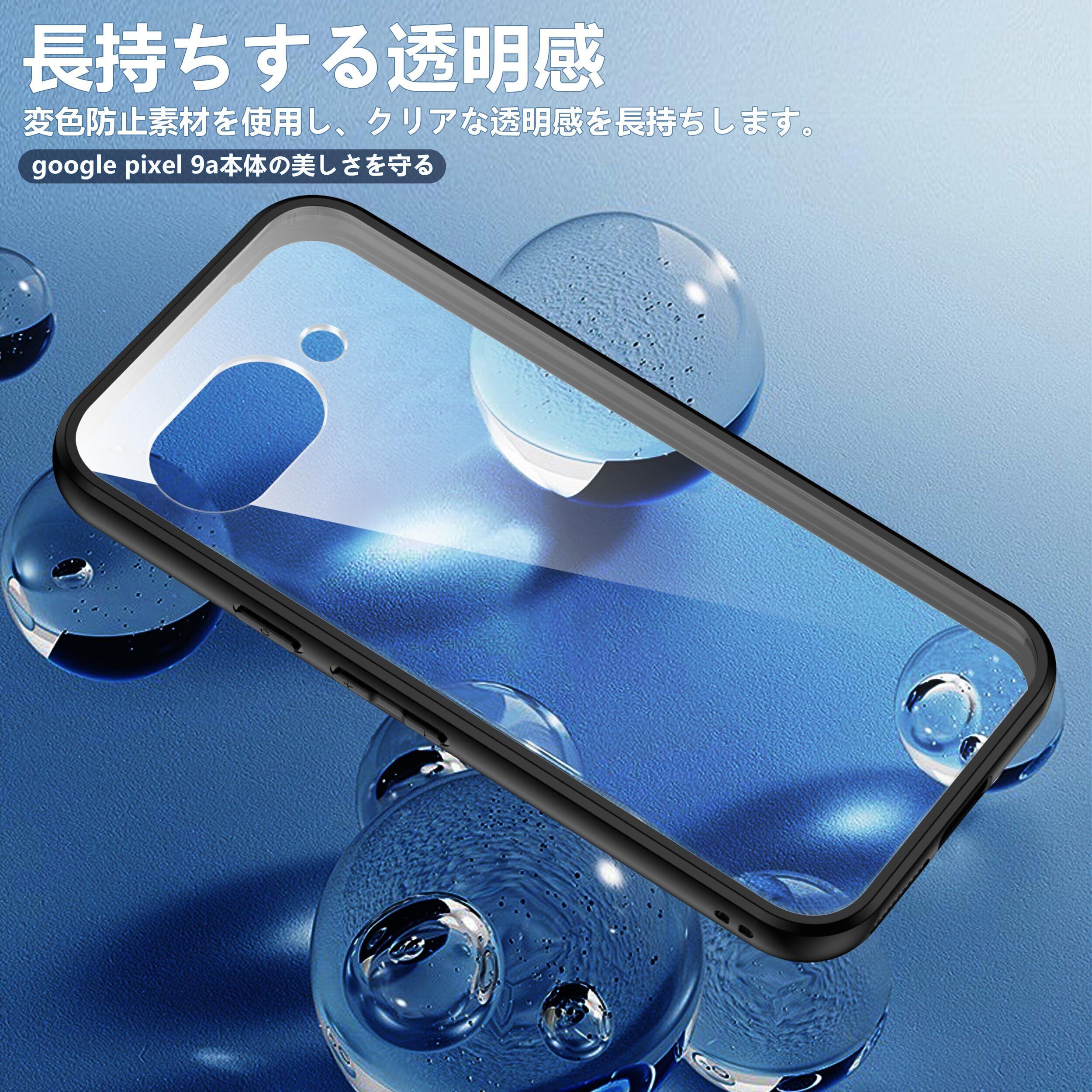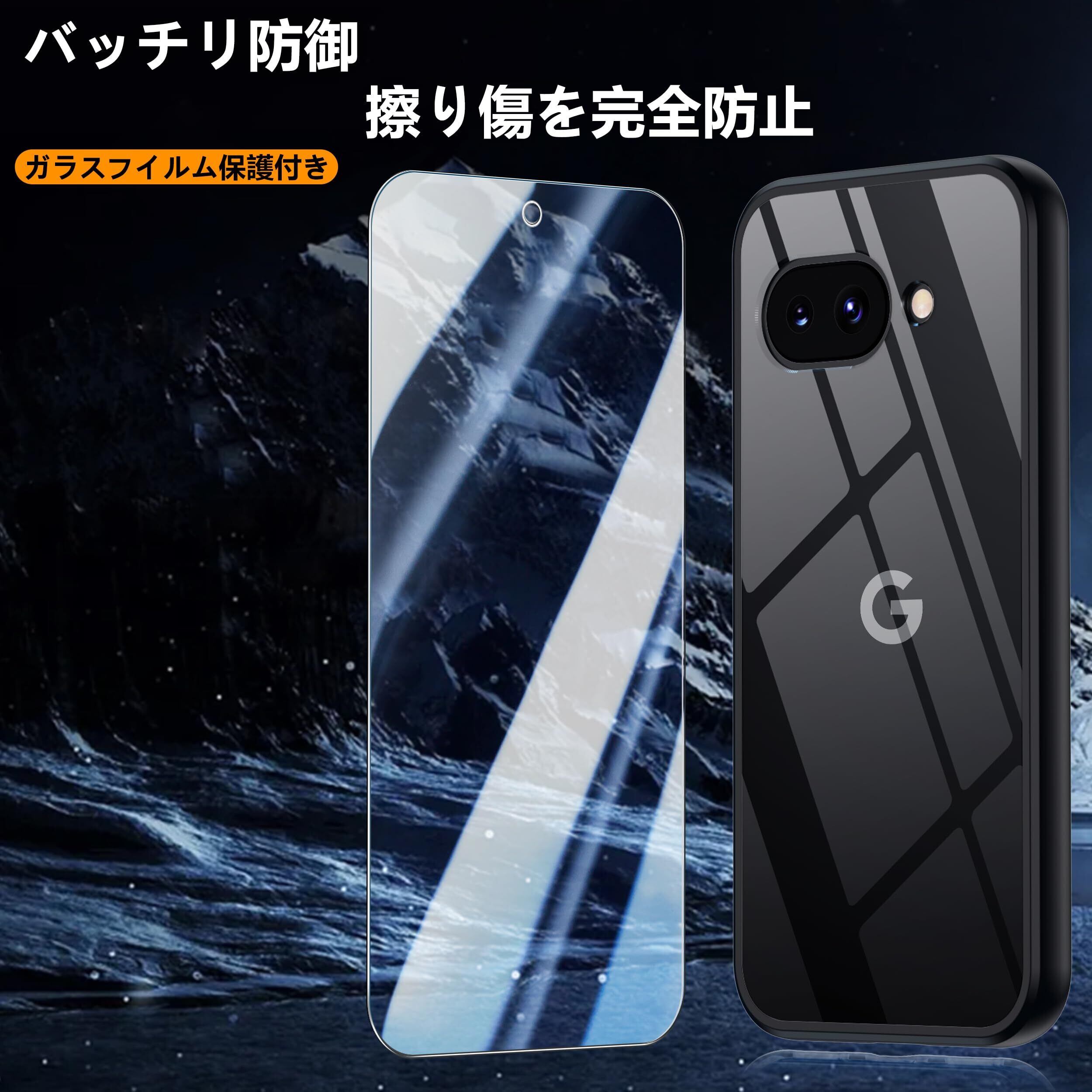 Google Pixel 9a ケース ブラック 黄変防止 グーグルピクセル9a用 耐衝撃 ガラスフイルム保護付き 指紋防止 落下防止 耐久性 ストラップホール付 薄型 軽量 ソフトカバー ワイヤレス充電対応 googleピクセル9a用ケース
