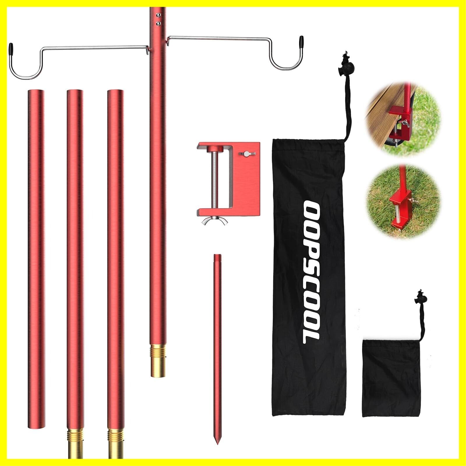 【高さ調節可能&ダブルフック設計】ランタンポールの長さは4段階に調節でき、約32cm、65cm、93cm、125cmの高さに設置することができます。卓上に置く場合は、高さを低く設定することもできます。「注目点」:ランタンフックが2つ付属し、最大耐荷重は約1kg(2*500g)です。ポールが重さでしなる場合は、ランタンハンガーの長さを短く調節してみてください。ペグを使用する場合は、地面にしっかりと固定されていることを確認してください。