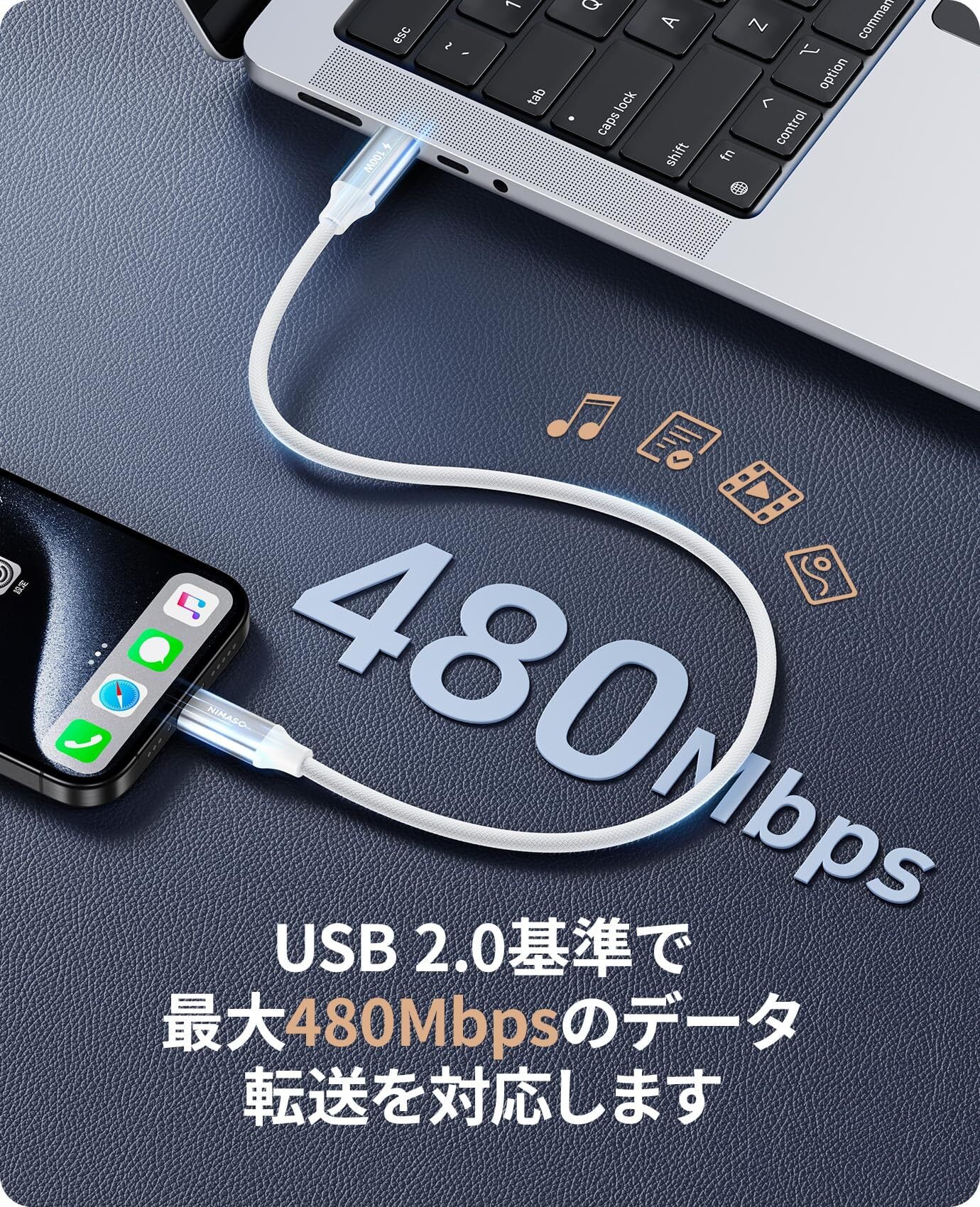 【幅広い交換性】USB 2.0基準で最大480Mbpsのデータ転送を対応します。USB-Cに対応したスマホ、タブレット、ノートPC、ゲーム機及びその他のUSB-Cデジタル端末に充電とデーター伝送を対応します。▲映像出力は非対応。