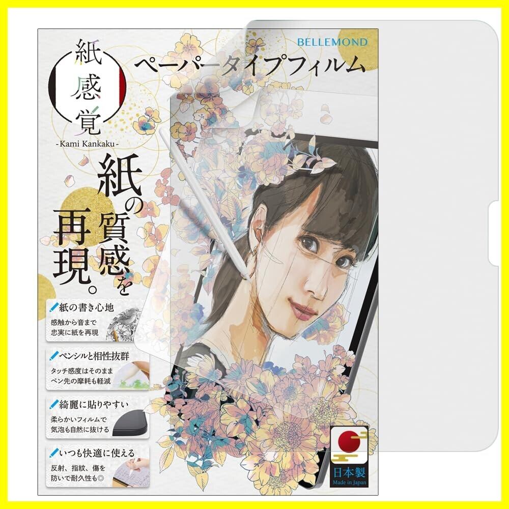 【BELLEMOND「紙感覚」とは】:紙感覚はBELLEMONDが2019年より販売している日本国内製造ペーパータイプフィルムです。紙と鉛筆を使った時のような摩擦係数を追求し、紙のような描き心地を再現しています。iPadをキャンバスにしてイラストを描く、学校でのノート代わりに使う等、iPadをもっとクリエイティブに使うためのフィルムです。