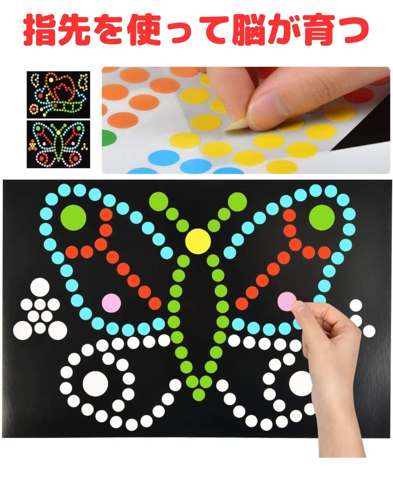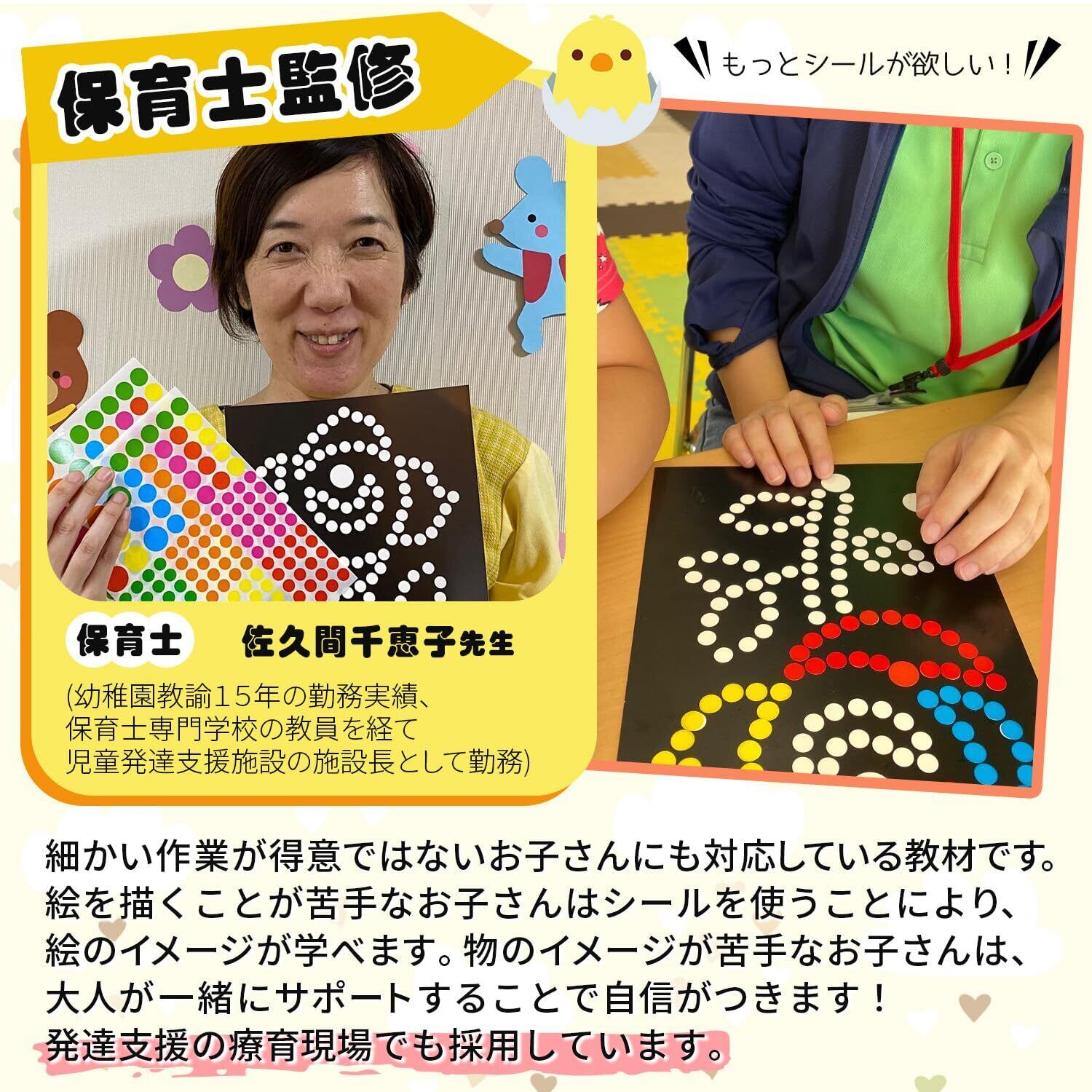 楽しいが一番! 年齢にもよりますが、幼児は、〇に合わせて貼るという事は、なかなか難しいものです。 ですから 大きくずれても、重なっても、おおらかなお気持ちで、見守っていただき、お子さんにとって、シール貼りが楽しい時間となりますよう、願っております。 ※この商品は、モンテッソーリ教育の理念に基づいて製作されています。