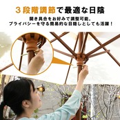 ●パラソルの開き具合はお好みで3段階調節できます。[直径約263/268/270cm]