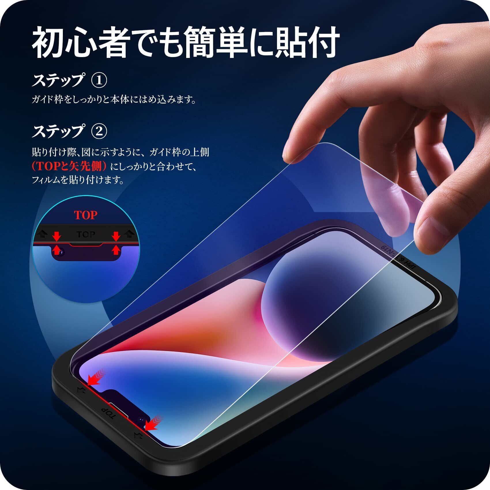 貼付け簡単 ▏専用の貼り付けガイド枠が同梱されています。ガイド枠を利用することで、本体とフィルムがズレることなく、だれでも簡単にフィルムを貼ることが可能です。また、フィルム自体のシリコン自己吸着層により、位置を合わせて上から軽く置くだけで気泡が入ることなく簡単に装着できます。