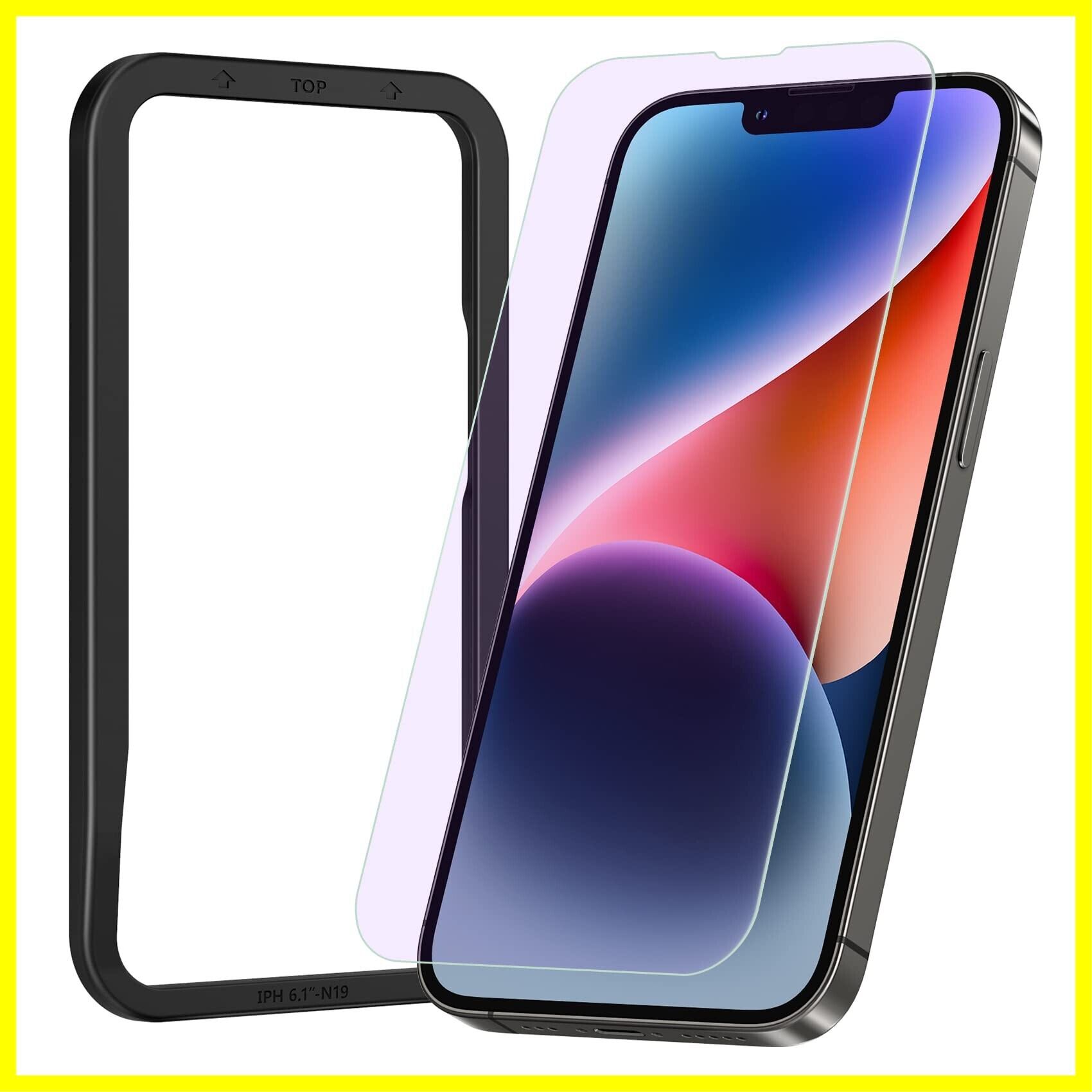 NIMASO ブルーライトカット iPhone 14 用/iPhone 13 Pro 用/iPhone 13 用 ガラスフィルム 保護 フィルム アイフォン14/13プロ/13 対応 6.1インチ用 ガイド枠付き NSP22G490
