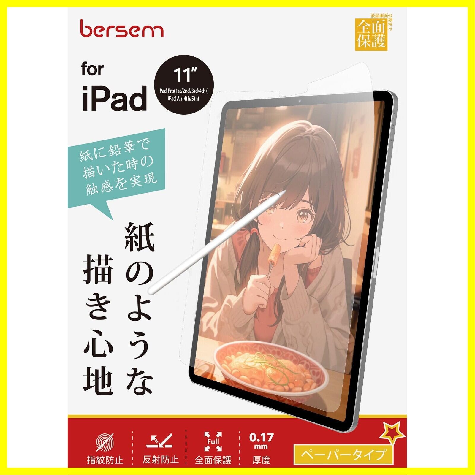 BERSEM【2枚セット】iPad Air 第5世代(2022)iPad Pro 11インチ(2022/2021/2020/2018年)iPad Air 第4世代(2020)用 ペーパーライクフィルム【紙のような描き心地】【反射防止アンチグレア】【指紋/気泡防止】【Apple Pencil対応】