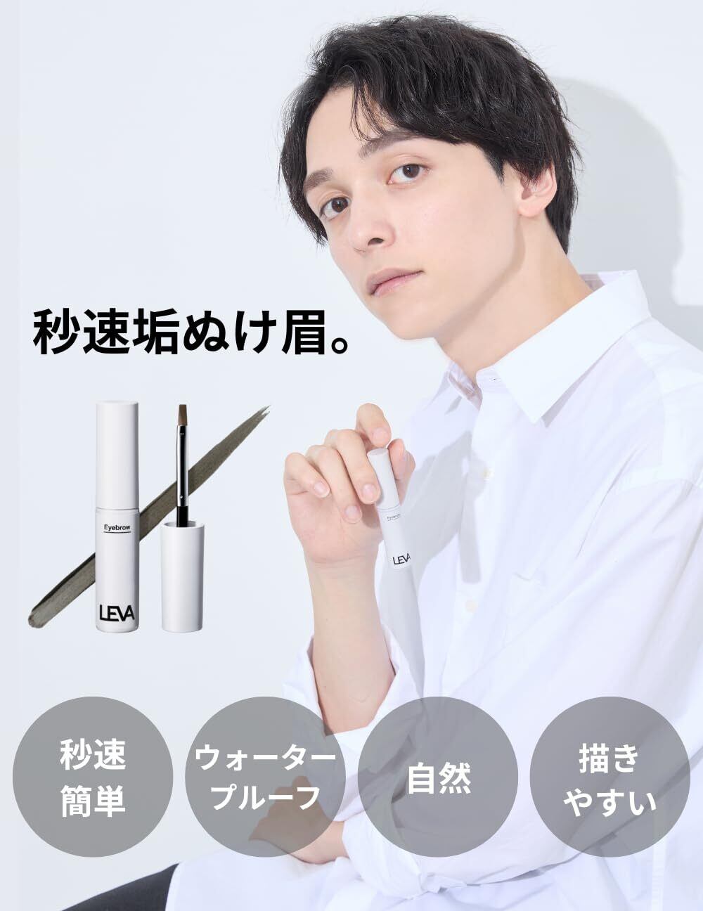 LEVA(レヴァ) アイブロウ ナチュラルブラック メンズ 皮脂・汗で落ちない ウォータープルーフ 白髪眉 毛のないところも綺麗にかける 初心者でも簡単 バレにくい 自然なパウダー仕上げ リキッドアイブロウ メンズメイク